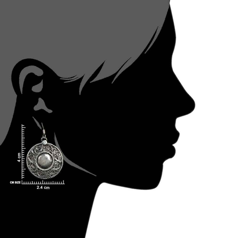 Handmade 92.5 sterling silver earrings with a round ball in centre surrounded by filigree floral pattern is perfectly paired with traditional as well as western wear. Gift it to your near and dear ones on special occasions and ceremonies. Suitable for girls and women of all age group.