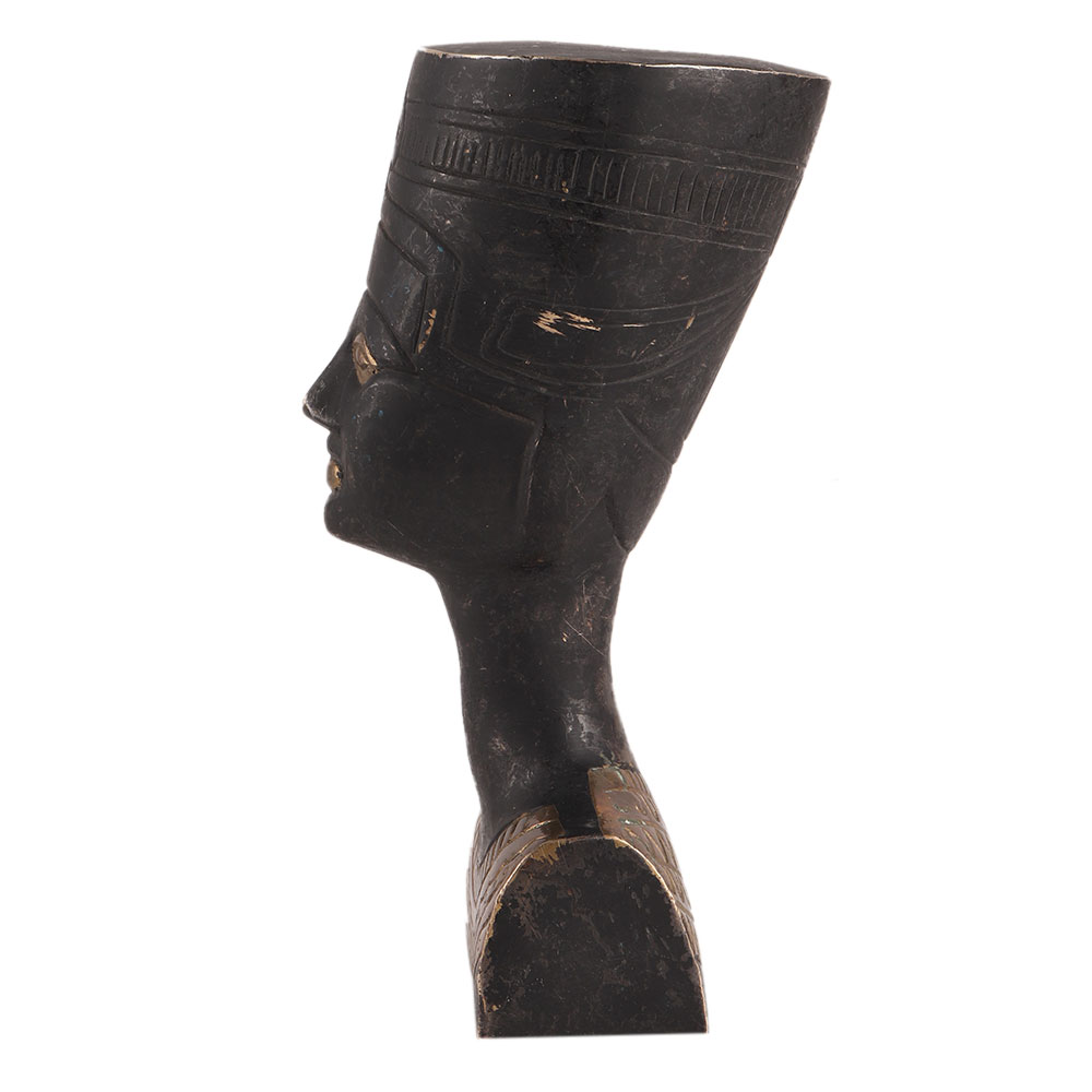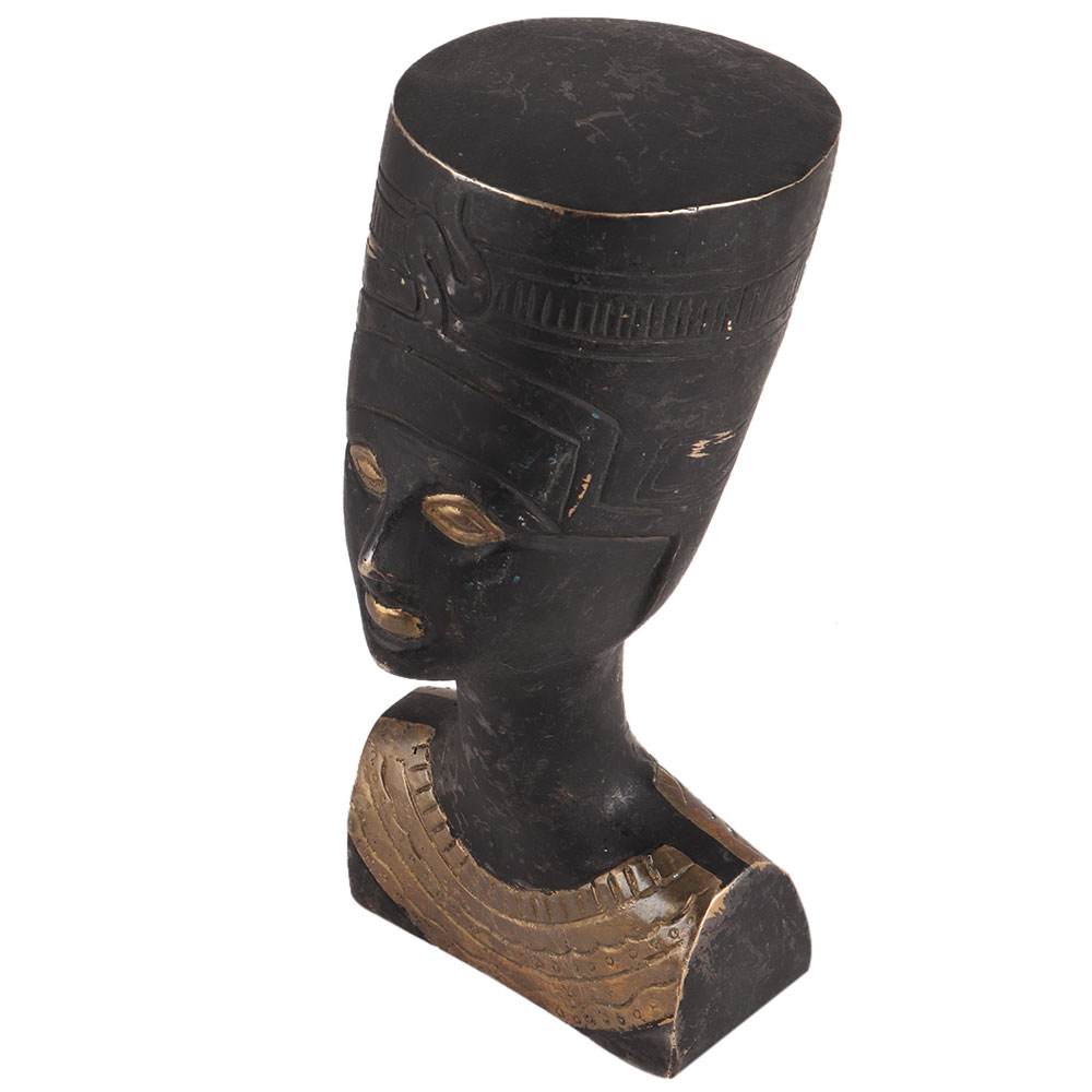 This artistic handmade brass bust of Neferneferuaten Nefertiti an Egyptian queen and the great aristocratic wife (chief consort) of Pharaoh Akhenaten. Nefertiti and her husband were famous for starting a religious rebellion by worshipping only one god, Aten, or the sun disc. She reigned with her husband during what was undoubtedly the richest period in Ancient Egyptian history.