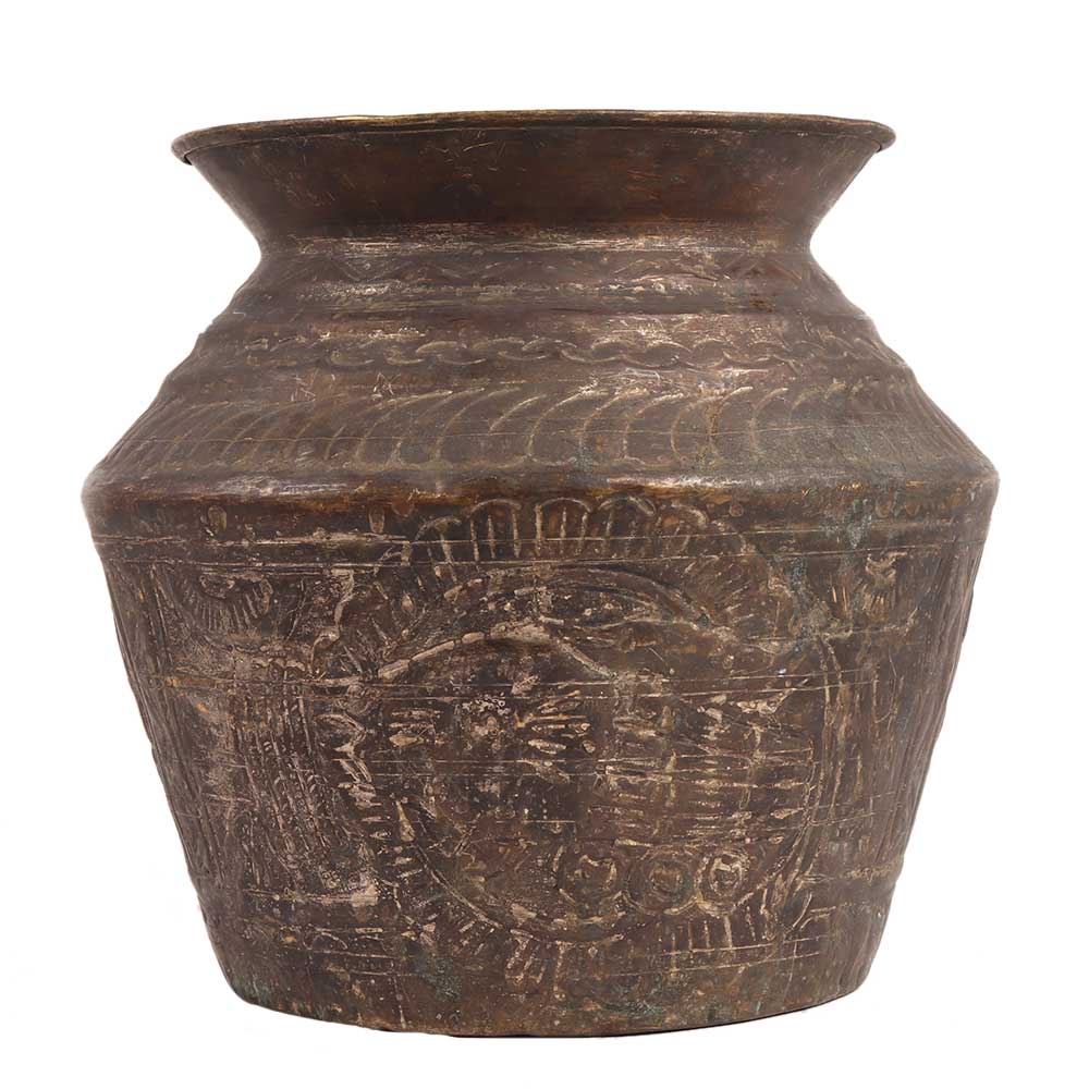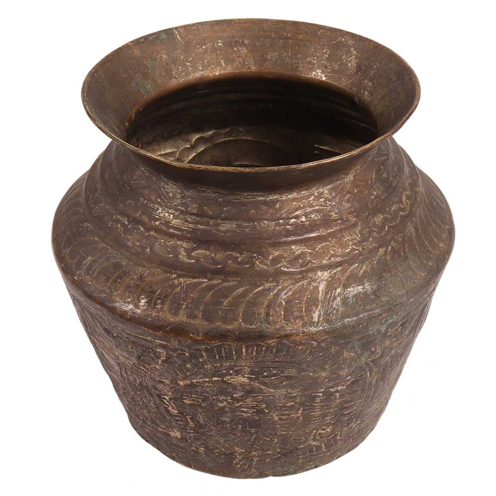 On all significant occasions, a Kalash is placed with appropriate rituals near the entrance as a welcome sign. It is also traditionally used when receiving holy persons. This Lota or Kalash is made of solid brass with an engraved design . It can also be used as a vase.