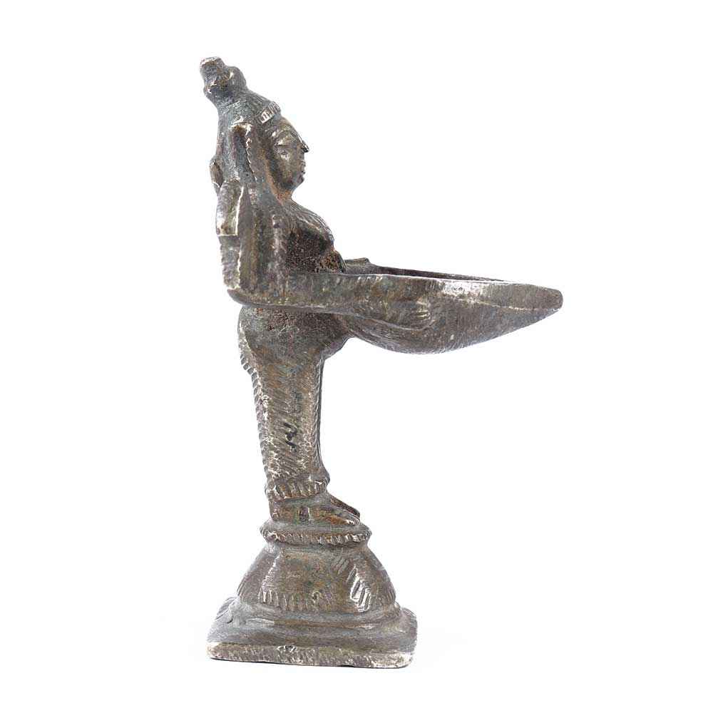 The indian brass oil lamp, also known as a diya, is a traditional oil lamp featuring a lady figurine. The diya is an oil lamp that burns vegetable oil or ghee Indian butter and has been used as a source of light and ornament since classical era. You can also use them as ornaments in your home, such as in the living room or bedroom, or to replace candles on a dinner table.