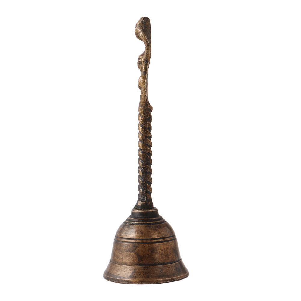 The hand held brass bell with god finial is a lovely addition to your pooja thali and temple and is incredibly sturdy and attractive. It is easily transformable into a lovely anniversary, wedding, Diwali, or Valentine's Day item. Utilize as a Pooja Accessory for Daily Pooja. Perfect for pujas, prayers, auspicious occasions, and festivals