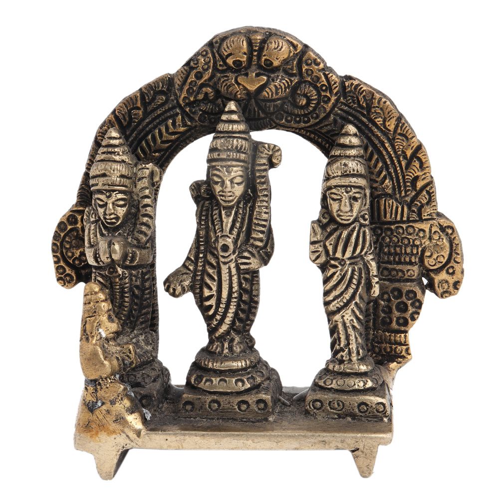 Handmade brass Ram Darbar with Lord Ram, Sitaji , Laxmaji and hanumanji sitting on his knees and folding hands.It has a complete prabhavali with a dragon head on top..Gift it o your near and dear ones on diwali,weddings, inauguration ceremony, in schools and colleges, as a Showpiece etc.