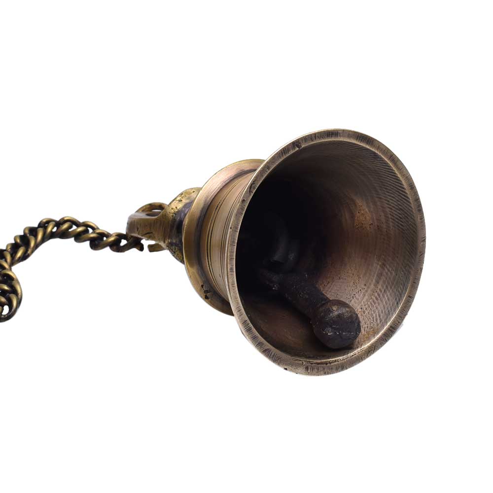 You can create a unique and peaceful atmosphere in your Pooja room Bells With the beautiful Brass Hanging Bell With Chain. Hang this graceful, superb, and artistic bell on a chain on your front door, roof terrace, worship room, or anywhere else you want. Pure brass has a melodious and rich tonal sound due to its high quality. The bell is made of golden brass and has a soothing and classy effect wherever it is suspended.