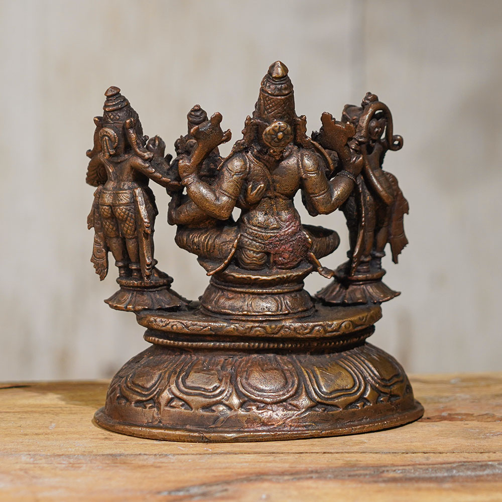 Bring the strength and beauty of the masterfully crafted Lakshmi Narasimha with Hanuman and Garuda brass statue into your home. Lord Vishnu is a major divinity in Hinduism and Hindu mythology. He is recognised as a lover of harmony and cosmic justice, and he resolves conflicts between god and humanity. The Hindu trio, also known as Trimurti, or the holy trinity of gods who represent the three stages of cosmic growth, consists of Vishnu, Brahma, and Shiva. Lord Vishnu statues are believed to provide patience, wisdom, prosperity, and prosperity to the house or workplace where they are placed.