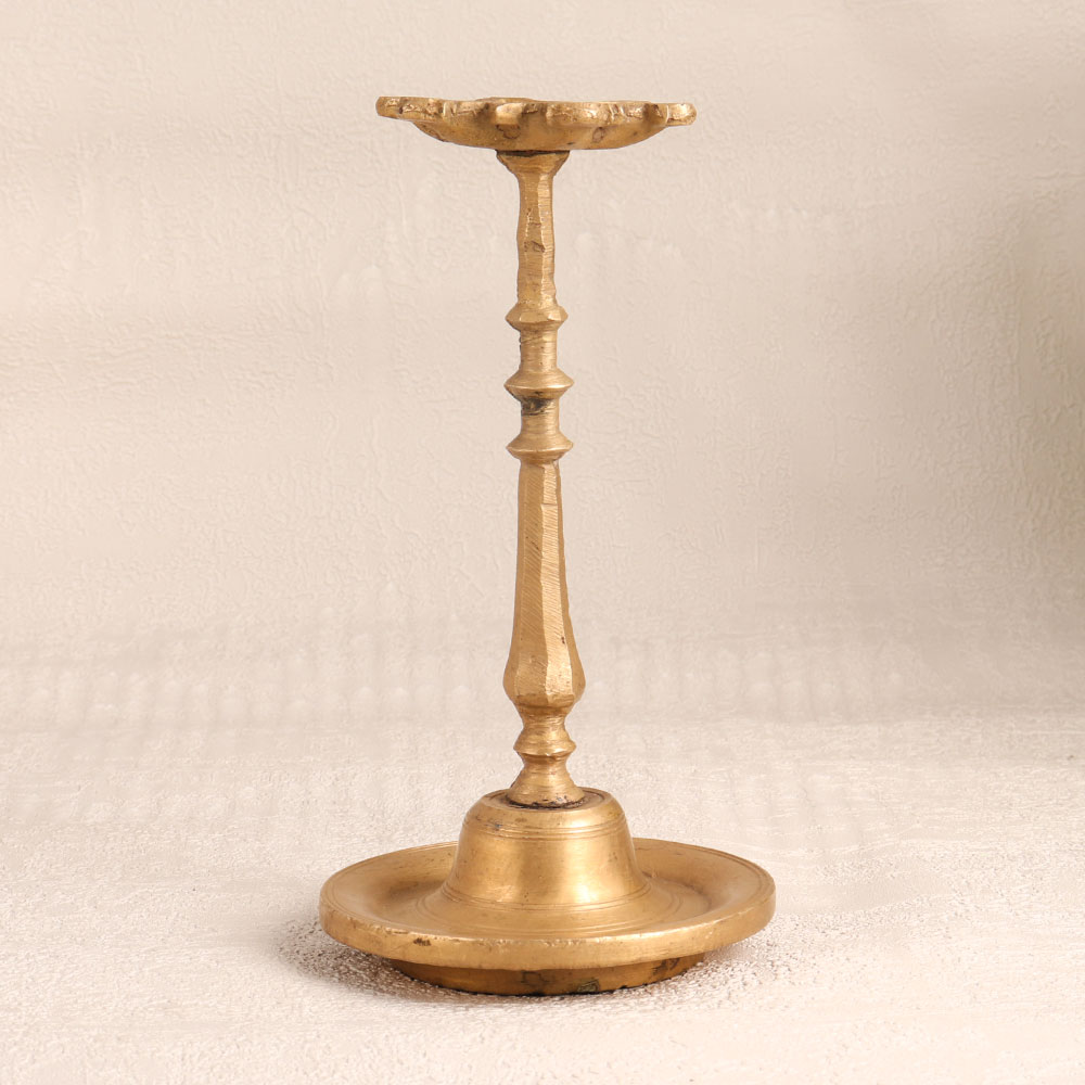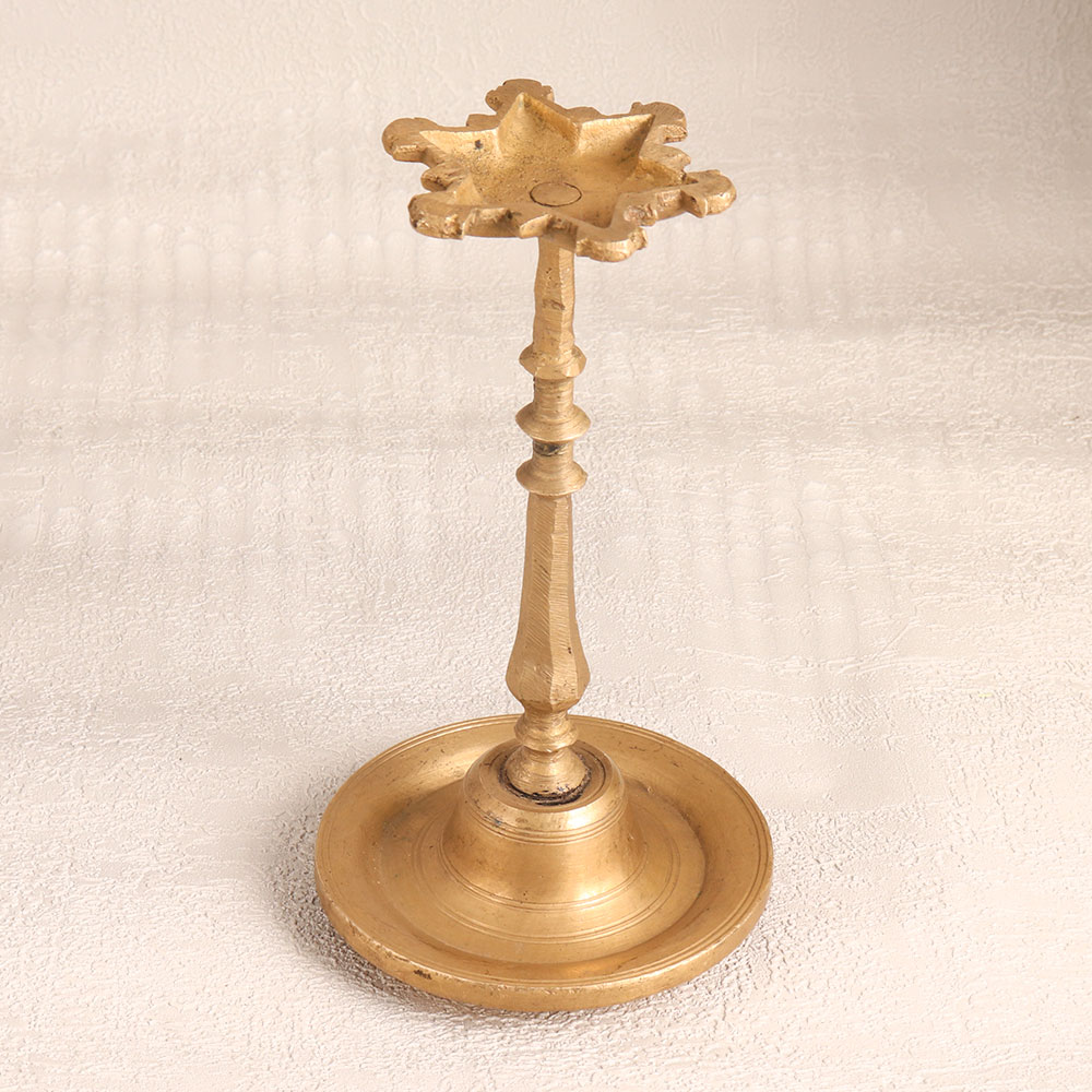 This Vintage Brass Oil Lamp with 6 Jyots harks back to a bygone era, with an antique golden finish that evokes the charm of yesteryears. Handcrafted by skilled Indian artisans in the iconic South Indian Art style, it is a testament to their dedication to preserving traditional heritage. This magnificent lamp offers versatility and elegance. It can be used with either mustard oil or ghee, along with cotton wicks, to create a warm, inviting glow. Its six jyots, or flame holders, can be lit individually or together, adding an aura of serenity to any space. Whether gracing your home, office, hotel, cafe, shop, or restaurant, it radiates an aura of timeless beauty. Perfect for both daily use and special occasions, this lamp is a symbol of devotion and tradition. It finds its place in prayer rooms, enriching the spiritual ambiance. Additionally, it's a splendid choice for decorating your home or office. The Vintage Brass Oil Lamp is a striking addition to any vintage collection and can also be showcased at exhibitions. Give the gift of tradition and culture to your family, friends or relatives on special, festive, or auspicious occasions.
