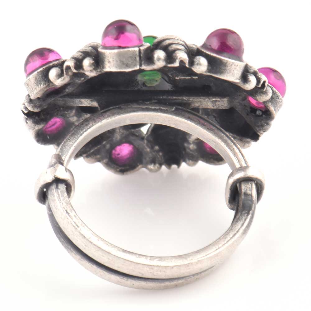 Several Amethyst Studded 92.5 Sterling silver ring is embellished with embossed motifs to create a new and unique design. This ring is very popular with girls and women and is usually worn on a get together party, birthday party ,as a souvenir or as a parting gift.
