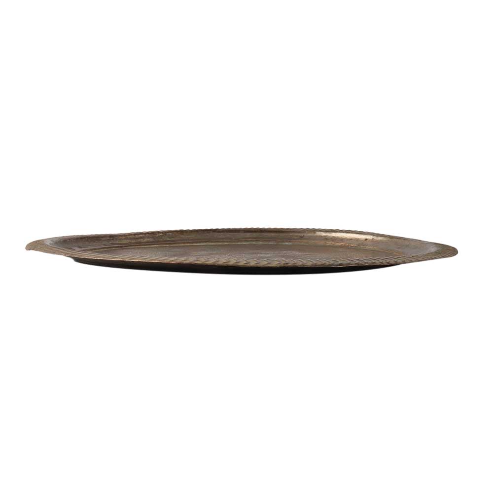 This is a pretty small scallop-edged vintage brass etched tray. The tray has a pretty scalloped edge, and in the middle is an etched pattern of flowers and people. The maker's mark is absent. Put it to use as decoration. It is in a good condition for its vintage age and is prepared for gift-giving.