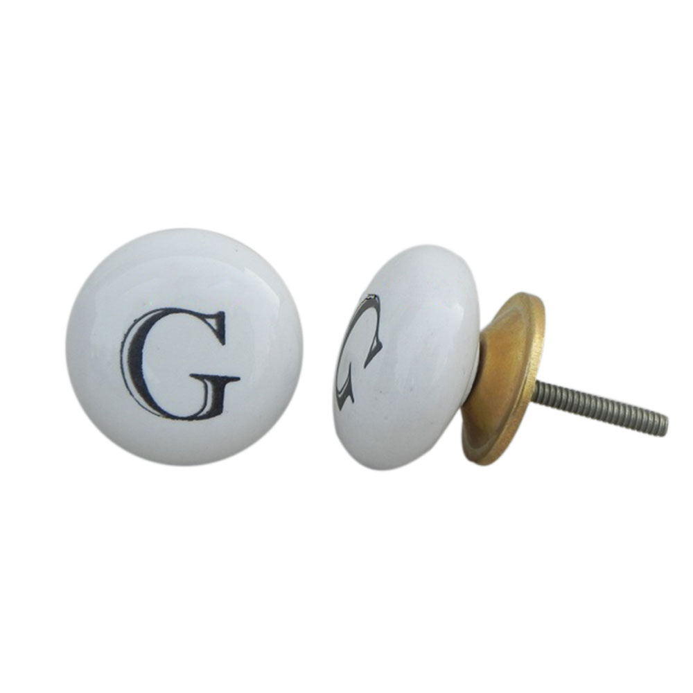 G alphabet ceramic dresser knob gives a glamorous, aesthetic and a personalized feel to your home décor. Each furniture knobs comes wit nut and washer to close the other end of the screw.