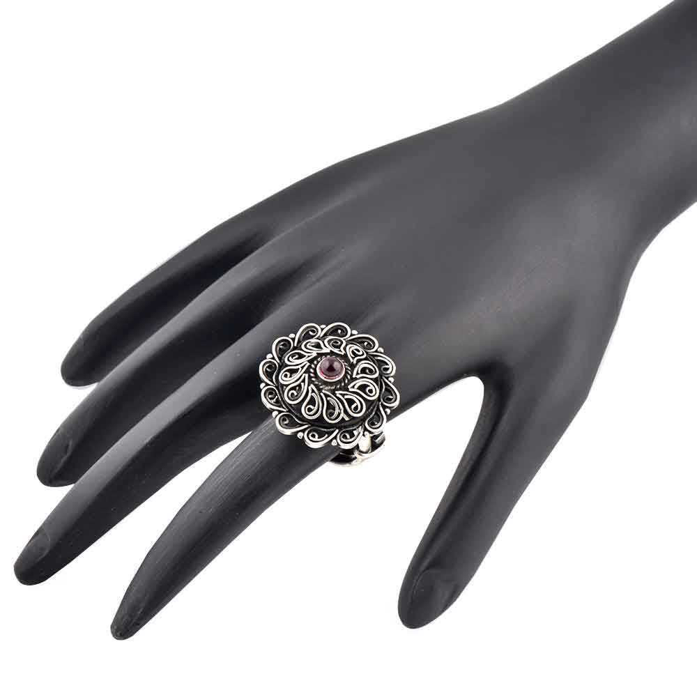 92.5 Sterling Silver Ring with filigree design Amethyst stone and pattern all over the ring make it the idle fashion statement jewelry to be worn during cocktail party, Wedding , reception party or any graduation meet or event. Can be the perfect gift for your friend, sister, wife , cousin or any other member of the family.
