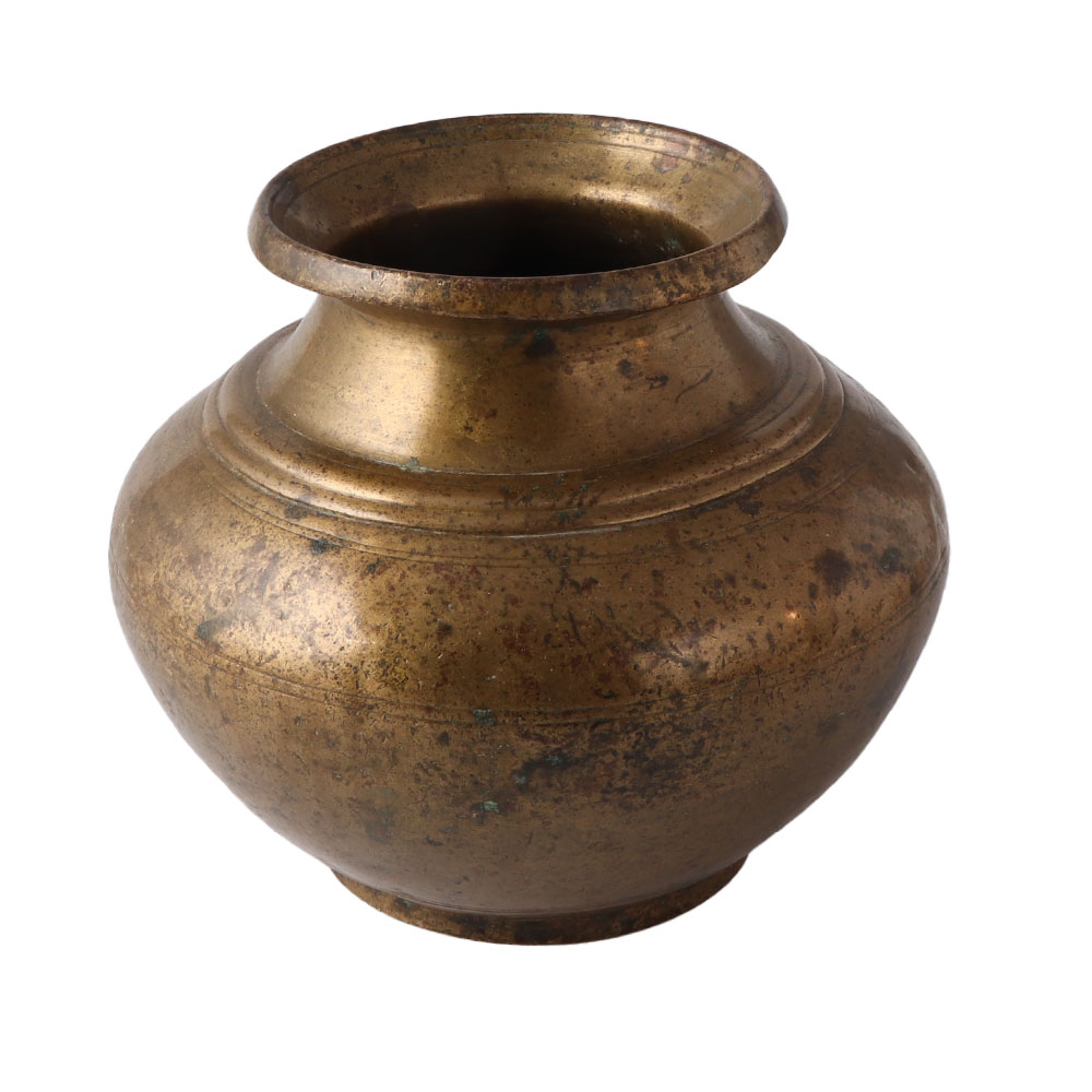 The engraved brass water pot (Lota) from North India is handcrafted by regional artisans, and each pot has a unique design that makes them all unique. The Pot displays the period's unique design. This beautiful accent piece is a treat for collectors and looks amazing in any room.