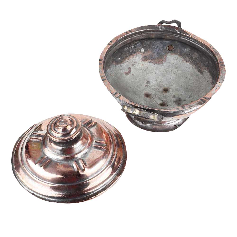 Handmade copper sugar bowl with a simple design lid and a stand with a circular base. It has handles on two sides and comes with a smooth finish .Use it yourself or use it to gift to your near and dear ones on festivals and important functions. You can also use it as a corporate gift.