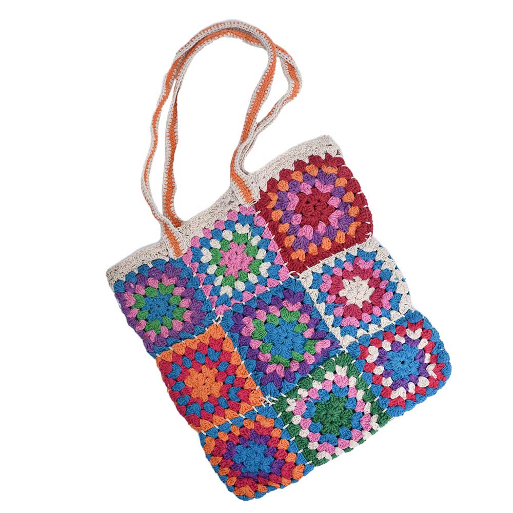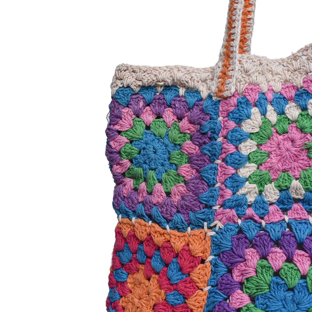 This gorgeous crochet bag is the ideal finishing touch for your summer wardrobe. Everyone will adore this very useful crochet bag for the summer. similar to Grandma Square This crochet bag has excellent color transitions, which really draws the eye. Grandma Square bags are timeless and make excellent gifts. Granny square bag in adorable soft and bright colors The vintage and retro appeal of crochet bags. There is enough room in the crochet bag for everything you need. I made it entirely by hand, using my own pattern. The crochet bag will give your wardrobe a distinctive look and makes a wonderful gift for a loved one.