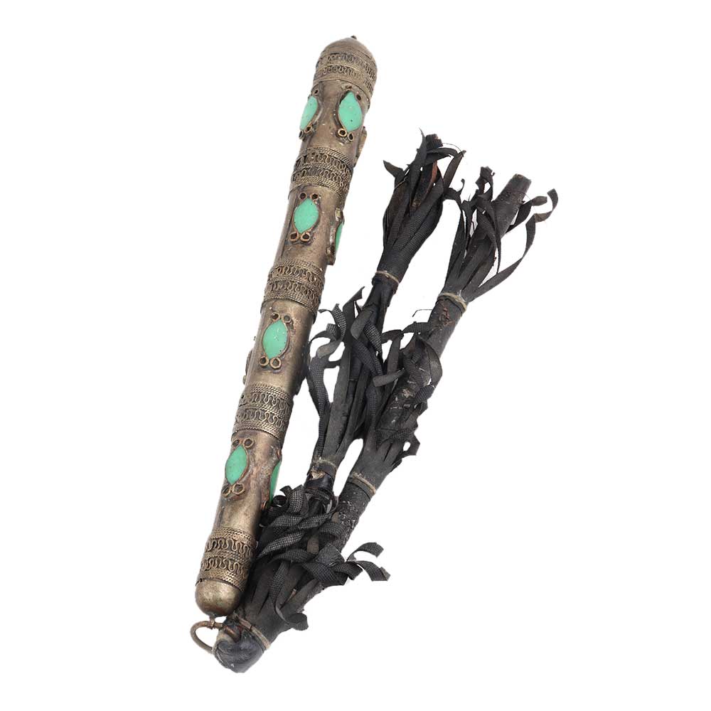 White Metal allover on stick with solid molded comfortable handle with Islamic Horse Hunter with enamel work for training dogs/for horse riding crop full length of the stick his whip is constructed of braided black suede leather and a leather strap. horse racing and exercising, Gift for near and dear ones.