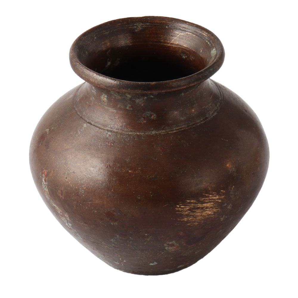 A truly gorgeous and distinctive metal water container that has leaves and birds etched all over it. Additionally, it has numerous designer details engraved on it, including a circle and a diamond. Additional circular borders with a variety of patterns are used to finish the motif. In temples and other places of worship, it is employed to store sacred water. The weight is considerable. It also functions as a vase. It is also effective as a decoration.
