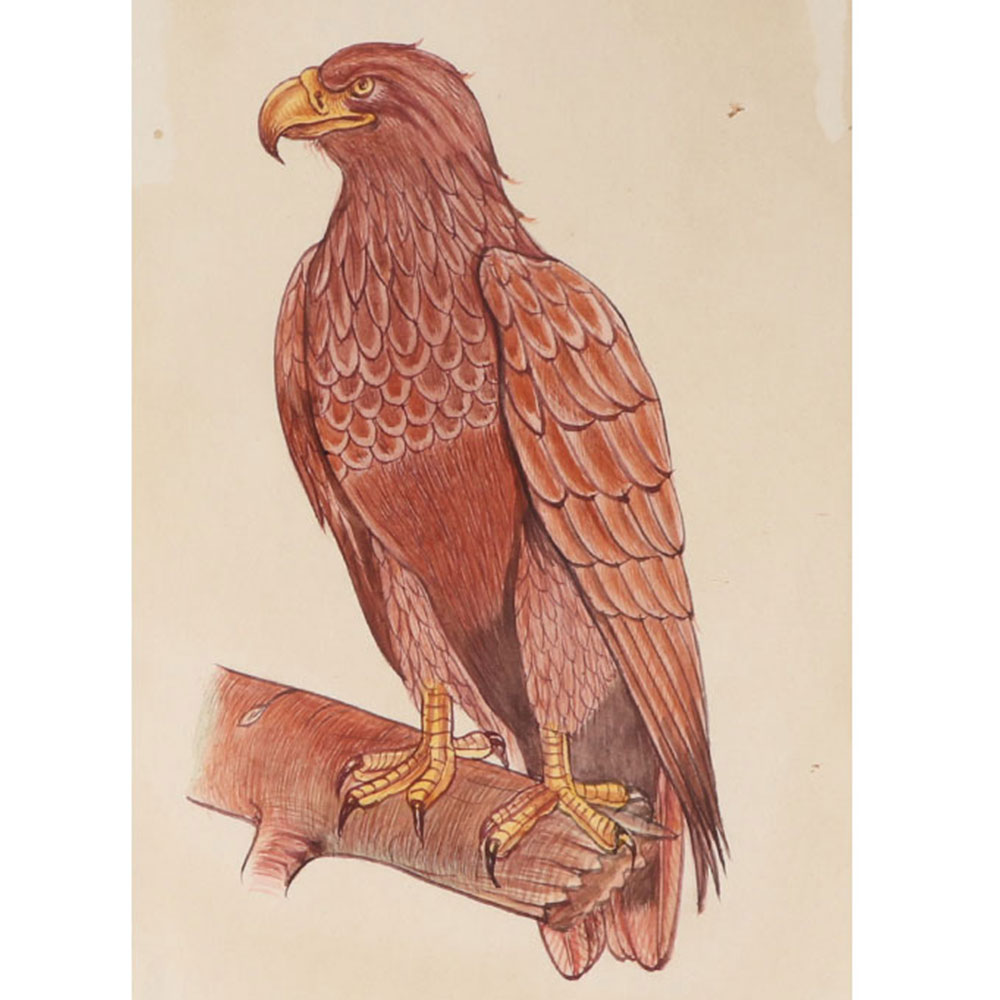 Large, hefty-beaked birds of prey, eagles. They have fully feathered, frequently crested heads, unlike vultures. Eagles utilise the same nest each year, are monogamous, and have lifelong partners. Since ancient Babylonia, eagles have represented war and imperial power because of their strength; examples of their likeness may be seen on Greek and Roman ruins, coins, and medals. The perfect gift idea for a biologist is this watercolor painting of a Golden Eagle perched on a branch.