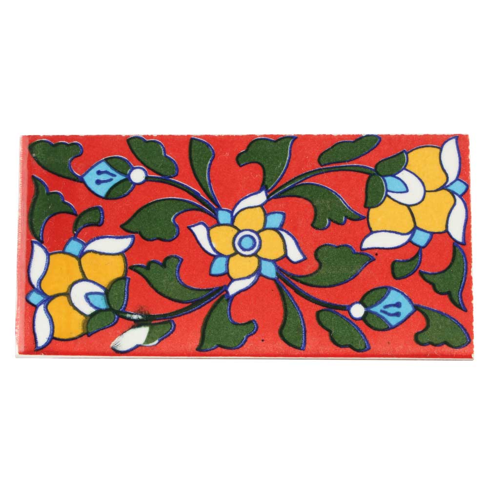 Red Base Yellow Ceramic Tiles. This Tiles Can be Used as a Wall Hanging, Good for Decorate Table Desks, Install in Fireplaces, Bathrooms, Kitchens, Splash Guards etc.