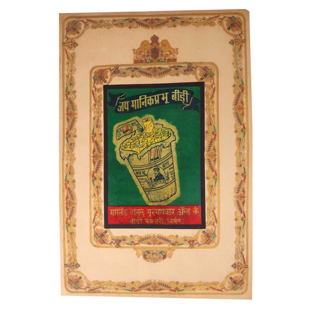Light up your vintage decor with this colorful oleograph print featuring a retro Bidi cigarette advertisement. Bursting with saturated hues and bold graphics, this antique print is an artistic accent that is sure to spark conversation. This brilliant relic of vintage advertising captures the spirit of a bygone era when branding was bold and designs dared to pop. The Art Deco-inspired graphics will transport you back in time, making it a fantastic conversation piece for history buffs. Whether you hang it in your living room, office, or any space in need of a retro jolt, this oleograph packs a visual punch. Let it infuse your walls with nostalgia and color. It's the perfect way to add an artistic accent that ignites discussion about the Golden Age of Advertising.