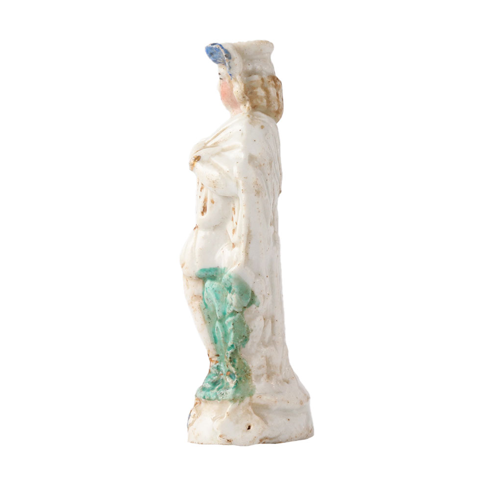 This is a rare porcelain figurines made of earthenware for mantel decor. The earliest figures that can be dated seem to be those of Queen Victoria. But when they were at their peak, they were mass-produced and frequently based on prints. They covered a wide range of topics, but those of actors and actresses were particularly well-liked. A man in costume figurine. He is dressed in breeches, a blue cape, shoes, and a white shirt with puffy sleeves. Use it as decor or a gift for family and friends.