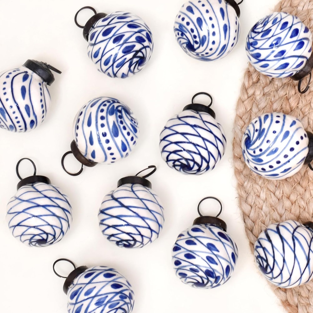 Each ornament is expertly handcrafted from ceramic, featuring a stunning blend of blue and white tones. The delicate patterns and smooth finish of the ceramic create a polished look that enhances the beauty of your holiday décor, bringing sophistication and grace to your celebrations.