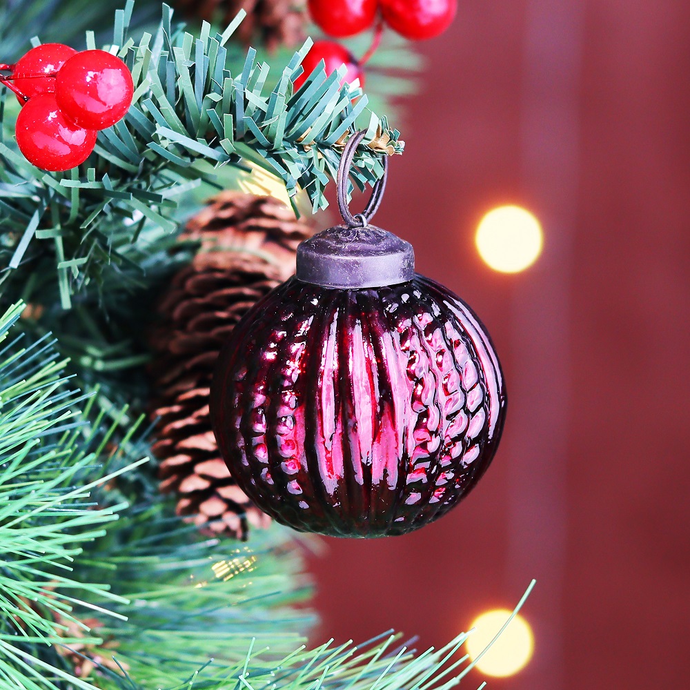 Crafted from premium glass, these ornaments offer a delicate shine and reflective finish, catching the light beautifully. The vibrant burgundy adds richness and depth to your tree, helping create a sophisticated holiday display that will impress guests and family alike.