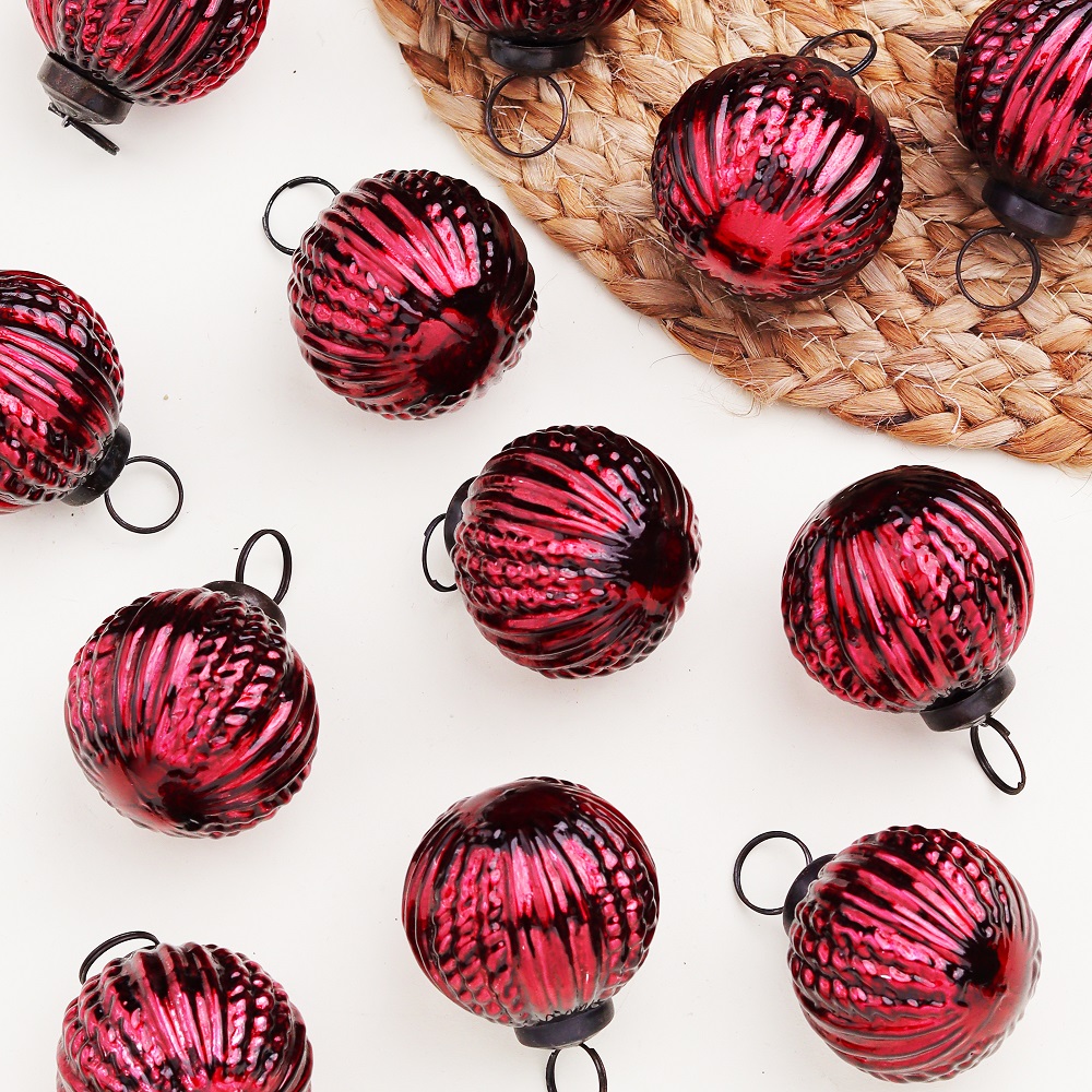 The deep, warm tones of burgundy provide a stunning contrast against the green of your tree or other holiday decorations. These glass ornaments are perfect for creating a sophisticated and elegant holiday display that will stand the test of time.