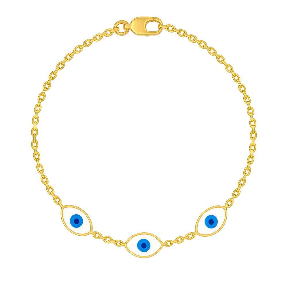 A minimal evil eye charm Bracelet sits on a sleek band offering subtle protection and versatile everyday style. Packed and quality checked by Indianshelf. Minimal Evil Eye Design Features A minimal evil eye charm sits on a sleek band offering subtle protection and versatile everyday style. Features a simple evil eye charm on a sleek 18K gold-plated band Entirely handmade no machines used Hypoallergenic and understated for everyday wear Detailed Specifications Origin: India. Safely packed and quality checked by Indianshelf Entirely handmade no machines used Every product comes with verified hallmarks and an official certificate of authenticity for your assurance. Minimal design complements any outfit effortlessly Everyday & Spiritual Uses Wear as a subtle daily accessory Gift to those who prefer minimal jewellery with meaning Offer in concept stores and minimal boutiques Use in styling for lifestyle shoots or modern weddings Care Guidance for Minimal Pieces Wipe the charm with a soft cloth; keep away from water and store separately. FAQ on Minimal Evil Eye Is the charm noticeable It is subtle yet eye-catching. Can I stack it with other bracelets Yes, its minimal design layers well. Does the plating last With care, the 18K gold plating retains its shine. Is it suitable for daily wear It is designed for comfort and daily use. Handmade Authenticity Every piece reflects heritage artistry and careful attention to detail. All our products are handmade never machine-made ensuring individuality.