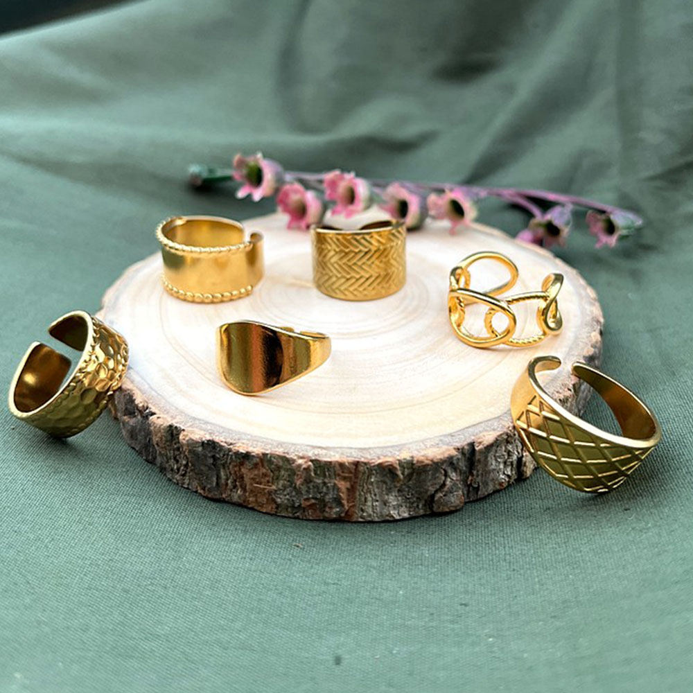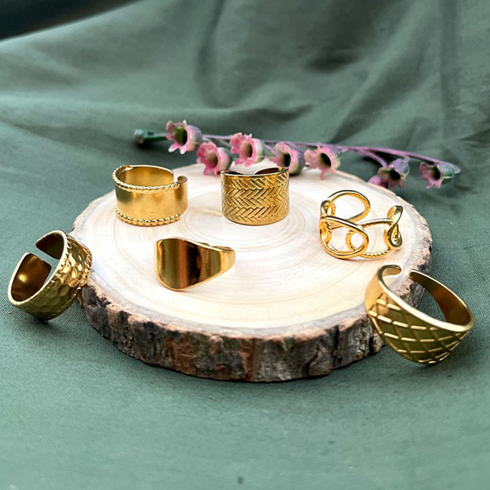 - Quantity: one flexible 18K gold plated ring stack set of 6