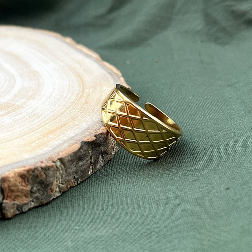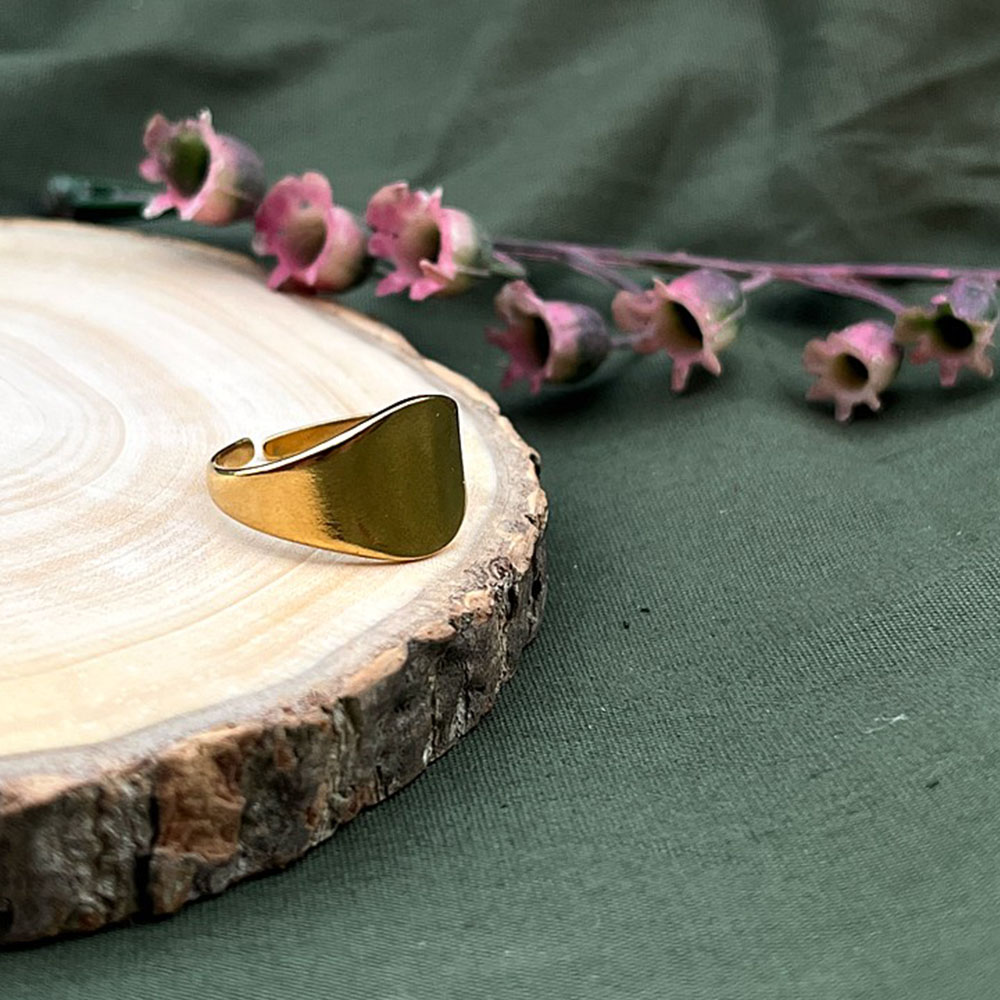 Store the rings in a dry box and wipe gently with a soft cloth after wear. Avoid moisture and fragrances to preserve the 18K gold plated finish and design details.
