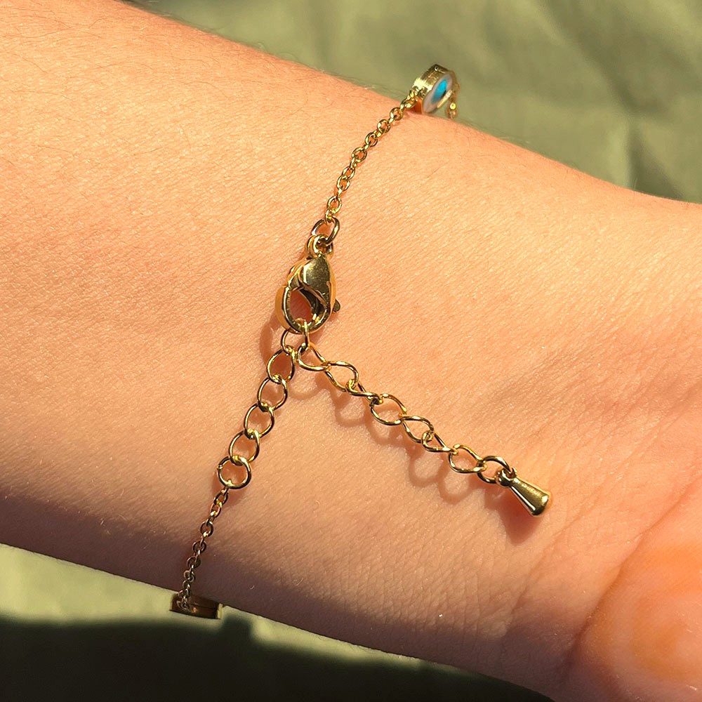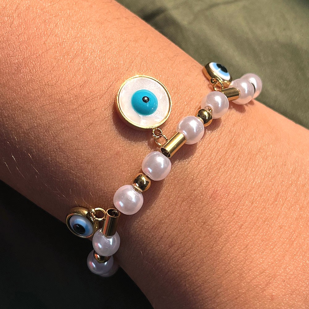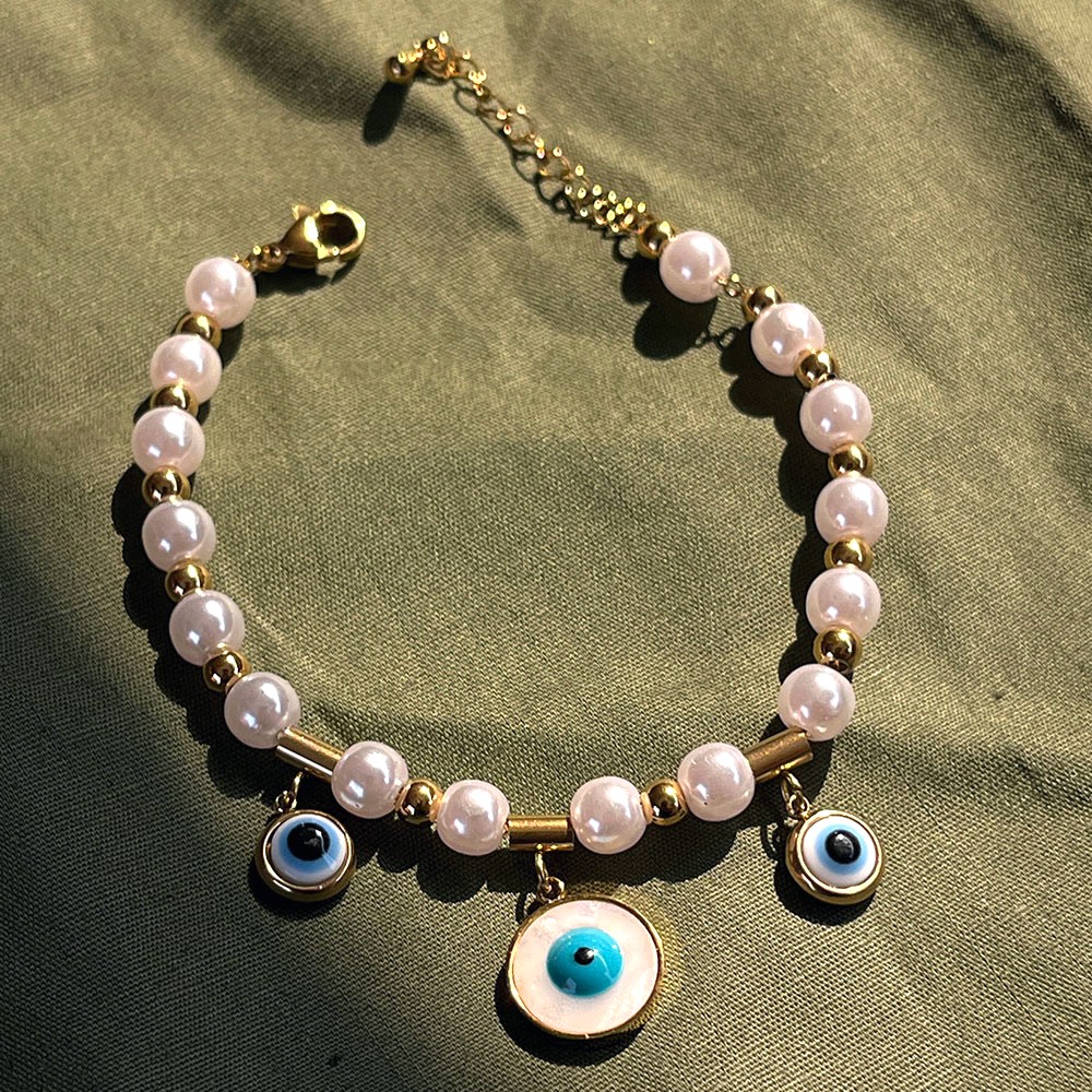 Soft in appearance yet rich in meaning, the 18K Gold Plated Pearl Protection Charm Bracelet blends timeless beauty with quiet symbolism. Crafted from stainless steel and finished in a warm gold tone, the bracelet features a luminous pearl charm that feels calm and intentional. The smooth gold surface paired with the gentle glow of the pearl creates a refined, balanced look. It’s jewelry designed to feel personal, protective, and effortlessly elegant.