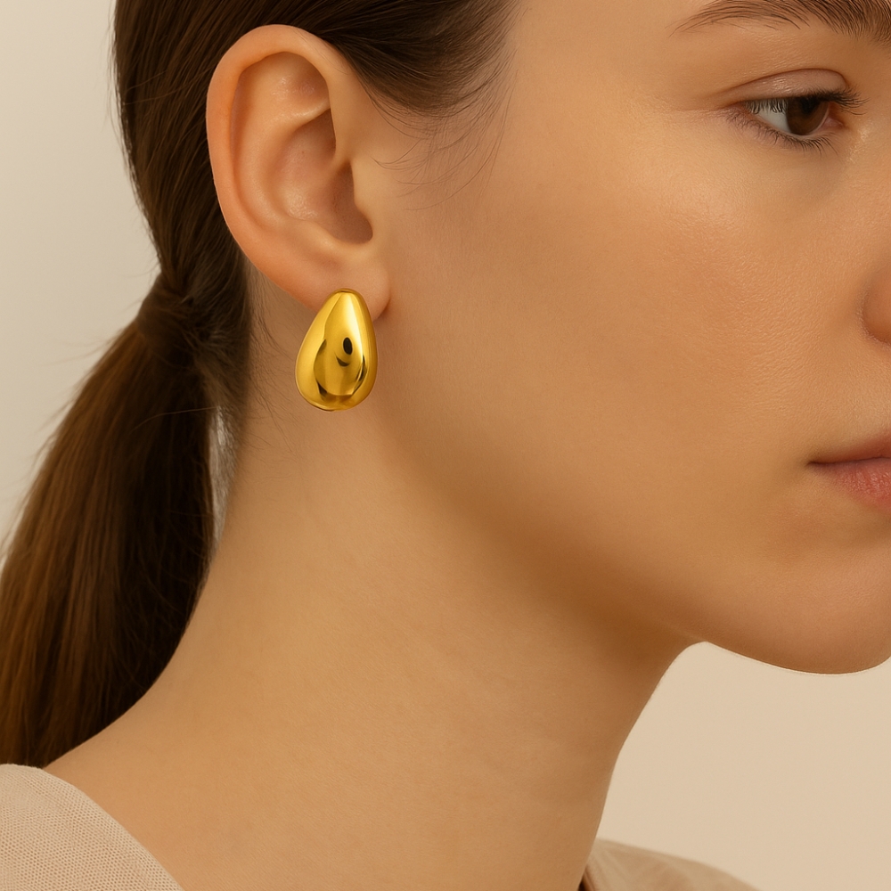 The smooth droplet contour offers a gentle sculpted look that feels modern, minimal, and easy to style for daily wear.
