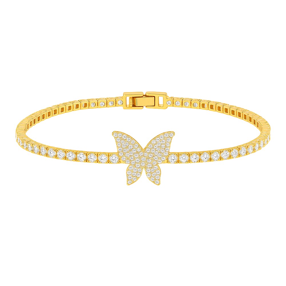Sparkling cubic zirconia stones and tiny butterflies infuse minimal style with light-catching brilliance for subtle glamour. Packed and quality checked by Indianshelf. Sparkling Butterfly Highlights Sparkling cubic zirconia stones and tiny butterflies infuse minimal style with light-catching brilliance for subtle glamour. Embellished with sparkling cubic zirconia butterflies on a slim 18K gold-plated band Entirely handmade no machines used Durable plating and stones ensure lasting sparkle for everyday style Key Product Specifications Origin: India. Safely packed and quality checked by Indianshelf Entirely handmade no machines used Every product comes with verified hallmarks and an official certificate of authenticity for your assurance. Slim profile designed for layering and minimalists Style & Gift Ideas Pair with office or casual wear for a hint of sparkle Gift for birthdays, anniversaries, or milestones Showcase in retail stores or pop-ups for minimalist jewellery lovers Feature in event styling for parties or festive celebrations Care Instructions for Zirconia & Gold Keep the bracelet dry and clean after wear, gently wiping stones and metal with a soft cloth; store separately to prevent scratches. FAQ About the Sparkling Butterfly Bracelet Do the stones catch light effectively The cubic zirconia stones are precision-cut to reflect light brilliantly. Is this bracelet suitable for layering Yes, the slim design complements other pieces beautifully. Will the plating last With proper care, the 18K gold plating remains bright over time. Is it comfortable for daily wear The lightweight band offers comfortable wear throughout the day. Handcrafted Trust Statement Every piece reflects heritage artistry and careful attention to detail. All our products are handmade never machine-made ensuring individuality.