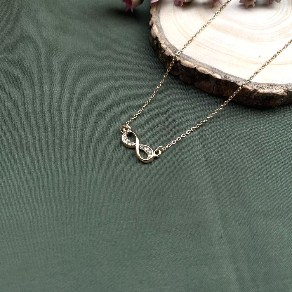 This sparkling infinity necklace translates a timeless symbol into a refined modern form. Crafted from stainless steel and finished with warm 18K gold plating, the infinity motif is accented with subtle sparkle that catches light without overwhelming the design. The curves flow smoothly, creating a sense of balance and continuity. A piece that feels gentle, meaningful, and quietly luminous.