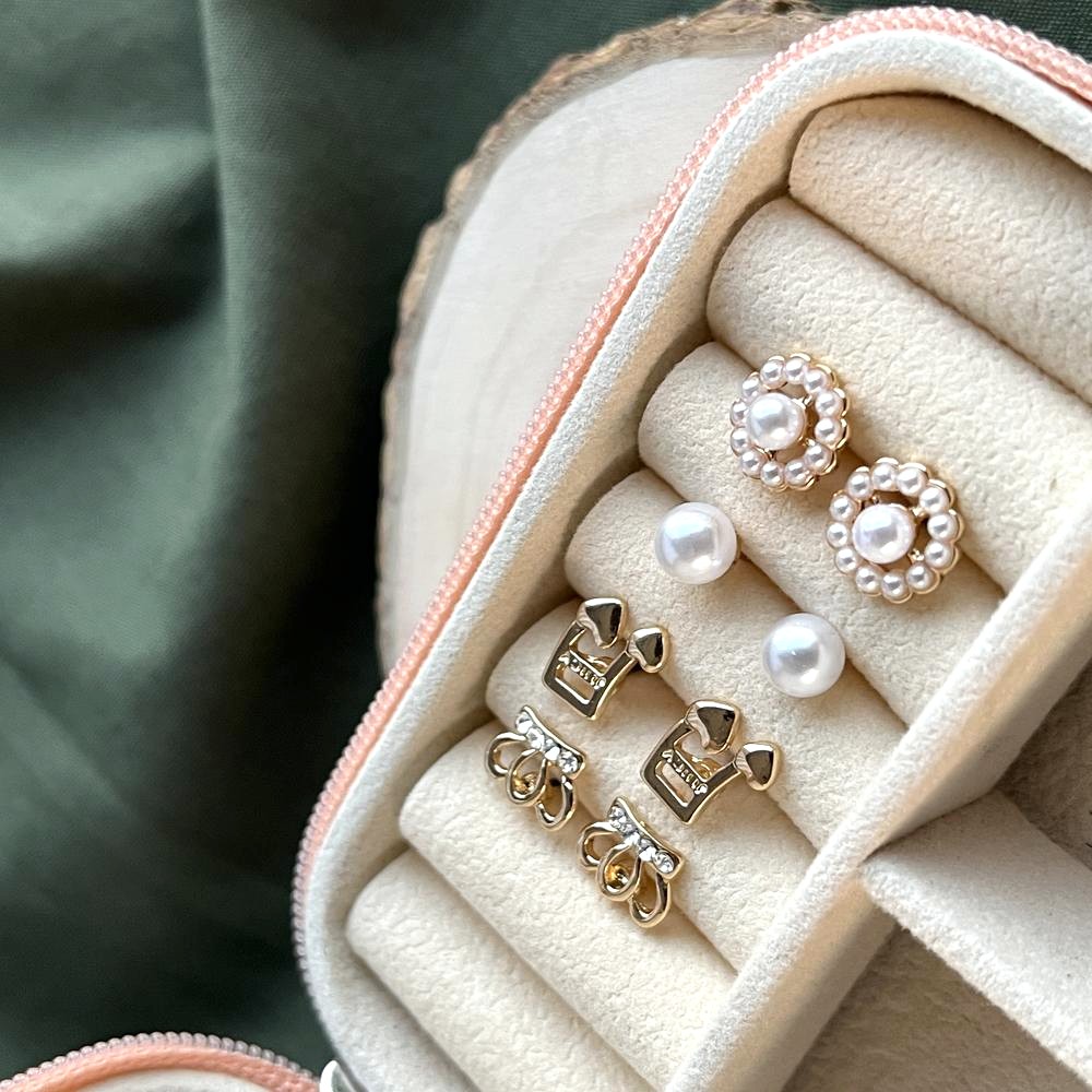 Store the set in a dry box and wipe gently with a soft cloth after wear. Keep away from moisture and fragrances to maintain the pearl shine and 18K gold plated finish.
