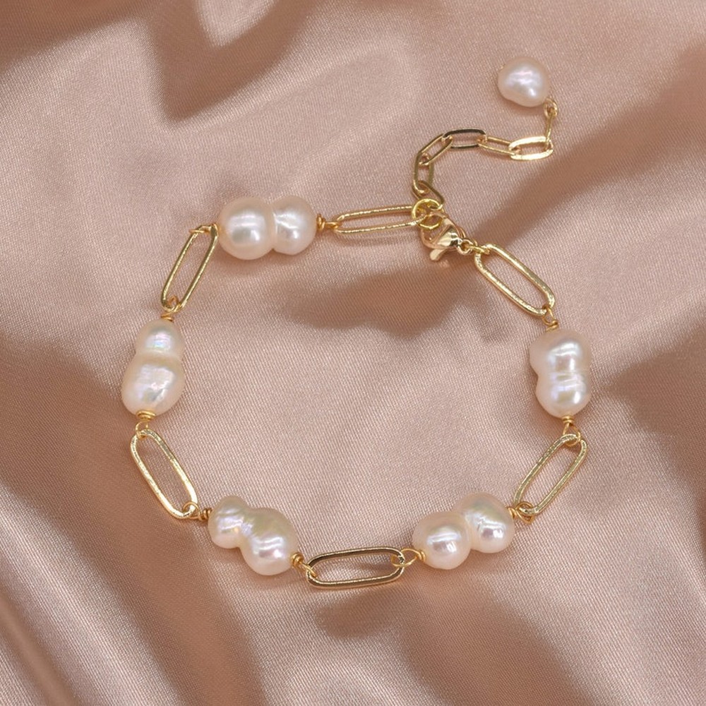 Wear this baroque pearl bracelet solo for an elegant statement or stack it with slim gold bangles, and store it in a soft-lined box to protect the plating and pearl surface