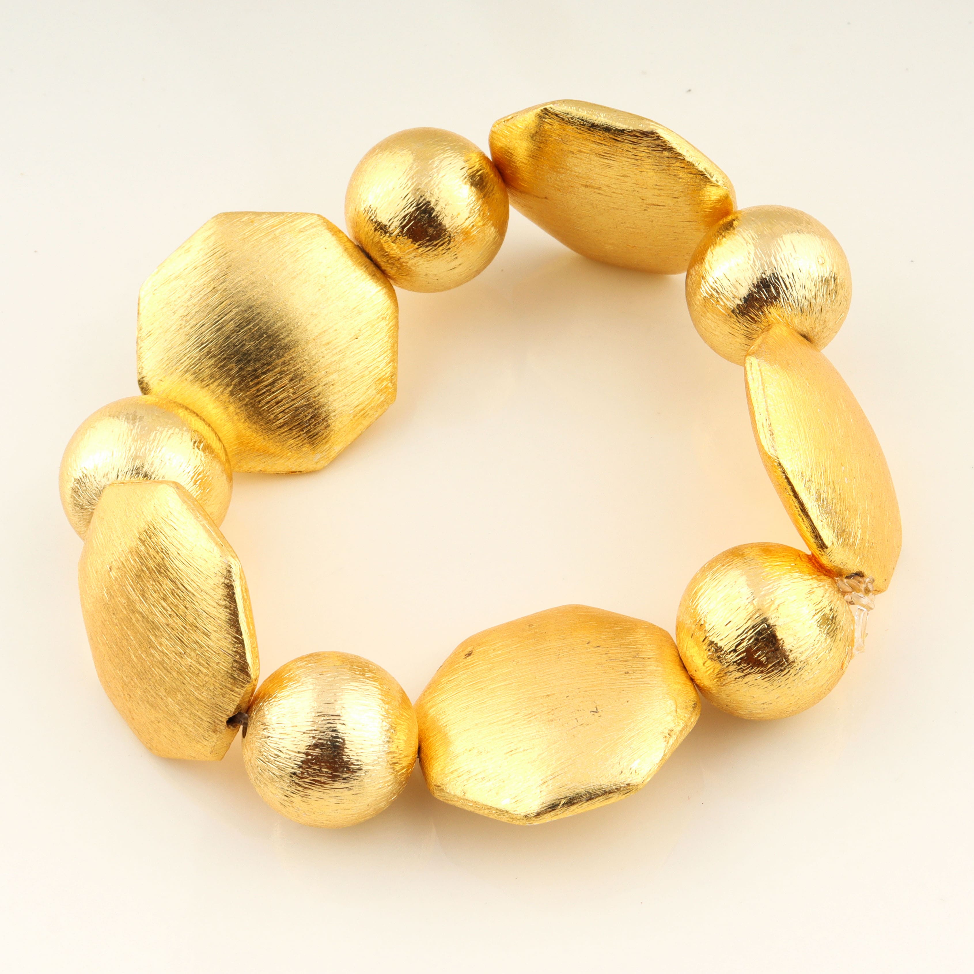 This 22K Gold Plated Chunky Finding Stretchable Bracelet is designed for women who love jewelry that blends bold style with everyday ease. Crafted by hand using high-quality brass components, each chunky finding is polished and plated in radiant 22k gold for a rich, luminous finish. The stretchable design ensures a comfortable slip-on fit, making it a standout accessory for both casual and elevated looks.