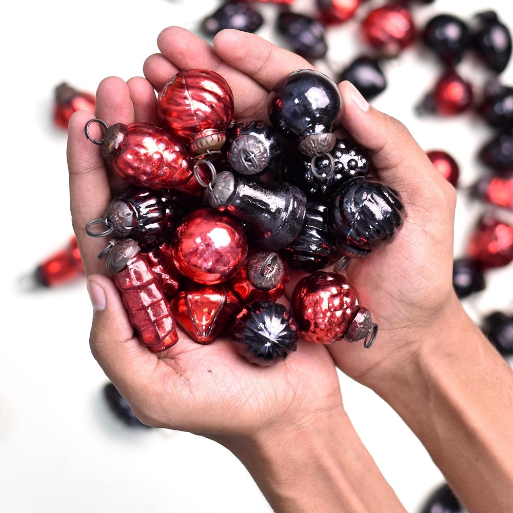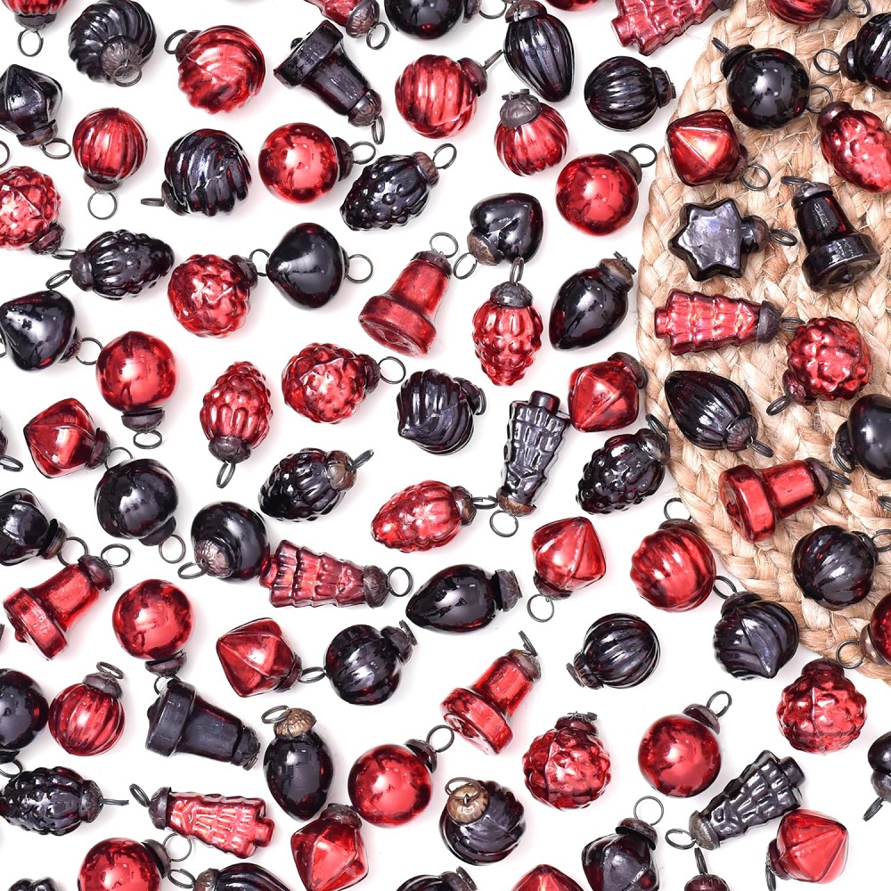 Black and Red Tiny Christmas Ornaments Which Used In Christmas Decoration like Christmas tree etc.