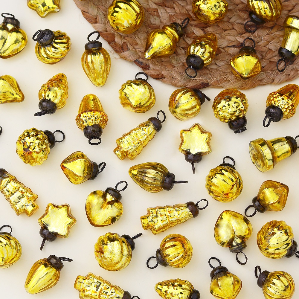 Golden Tiny Christmas Ornaments Which Used In Christmas Decoration like Christmas tree etc.
