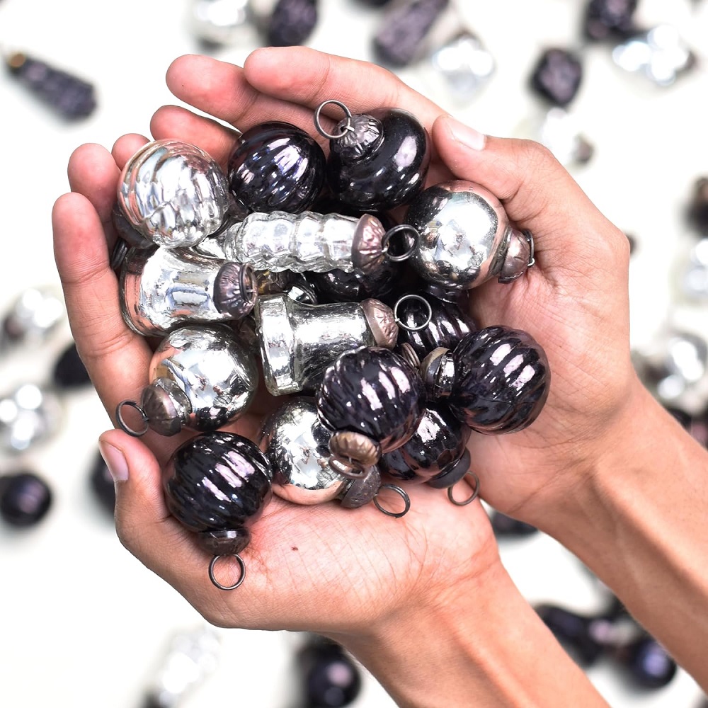 Whether your home style is modern, traditional, or transitional, these Black and Silver Glass Ornaments will seamlessly blend into your décor. Their timeless color scheme and delicate craftsmanship make them a versatile choice for any home, and they can easily be stored and reused for years to come.