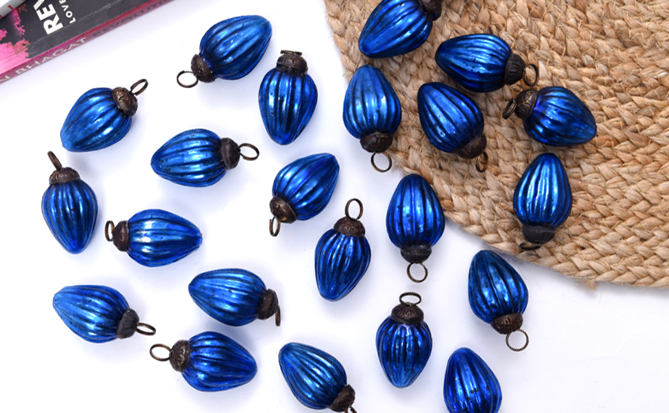 Tiny Blue Glass Christmas Ornaments Which Used In Christmas Decoration like Christmas tree etc.