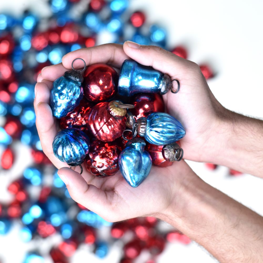The combination of turquoise and red in these ornaments brings warmth, energy, and a festive spirit to your home. The rich, bold red and refreshing turquoise work together in perfect harmony, creating a lively and dynamic contrast that will stand out on your tree or other holiday displays. These colors evoke the feelings of joy and celebration that are at the heart of the Christmas season.