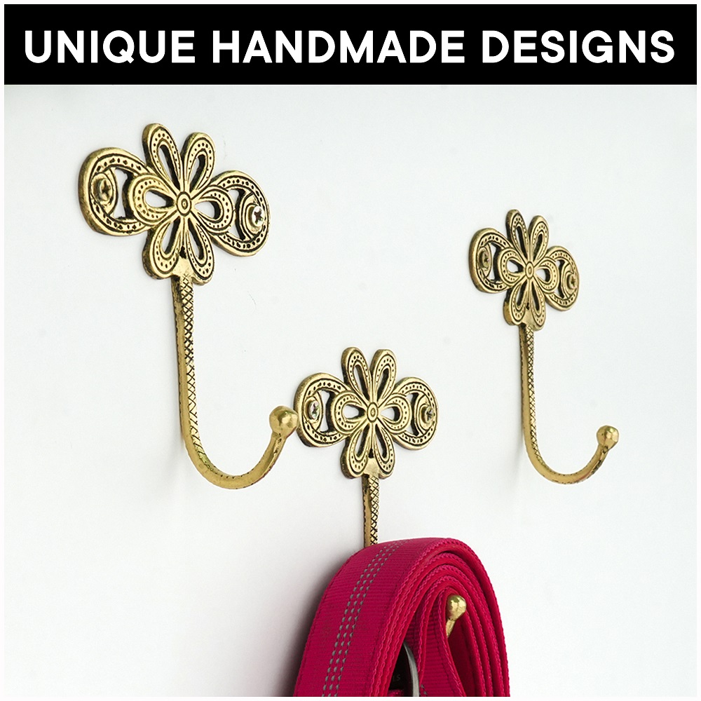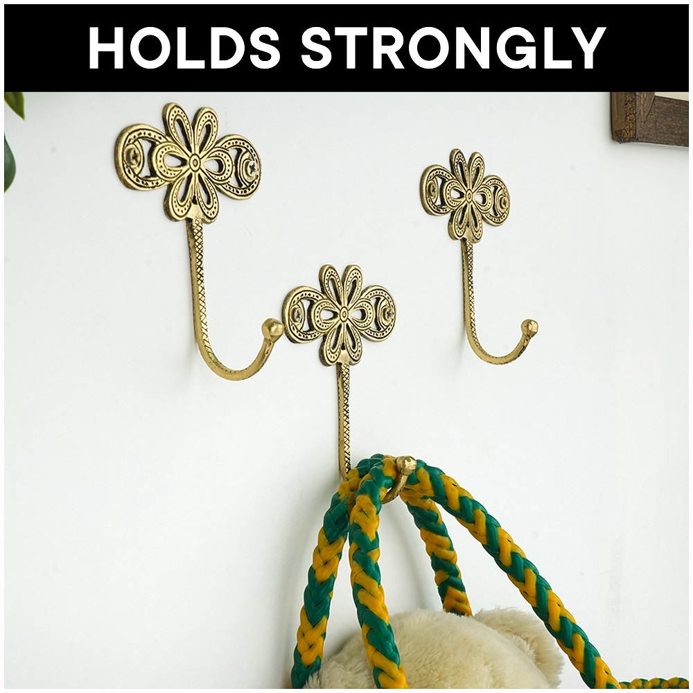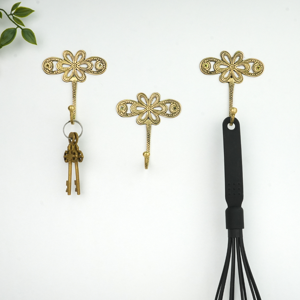 Add timeless elegance to your walls with this handcrafted brass floral wall hook. Featuring an intricate flower-inspired backplate with delicate detailing and a sturdy curved hook, this piece beautifully blends decorative charm with everyday functionality. Crafted from solid brass with an antique finish, this wall hook is perfect for hanging coats, towels, scarves, bags, or accessories. Its elegant design makes it ideal for entryways, bedrooms, bathrooms, or living spaces, adding a refined vintage touch to any dcor style.
