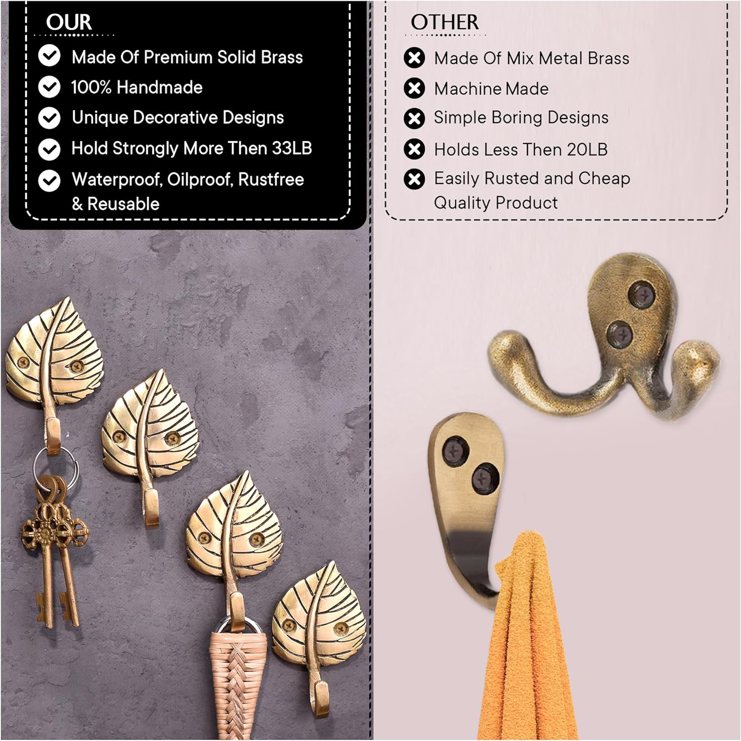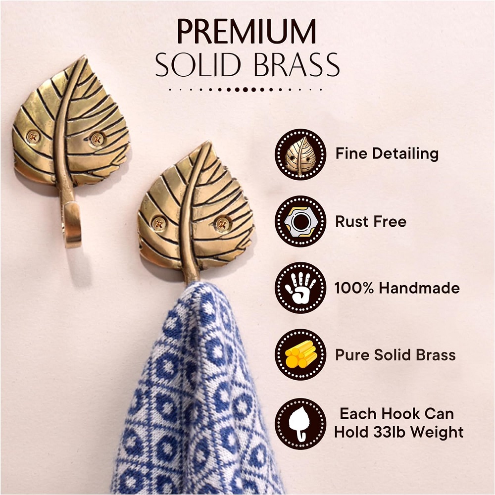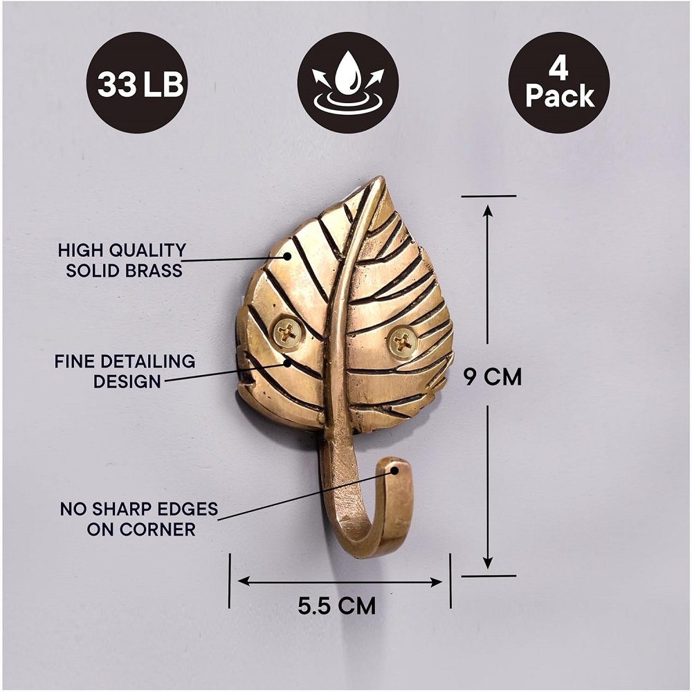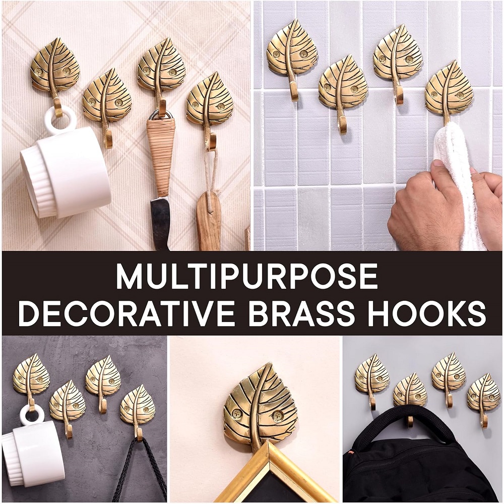 4 Pieces Brass Single Leaf Wall Hook to hang your towels, ties, belts, purses etc. It comes with a single hook Hang it near your kitchen sink or near the wash basin and also a great gifting option for friends and relatives.