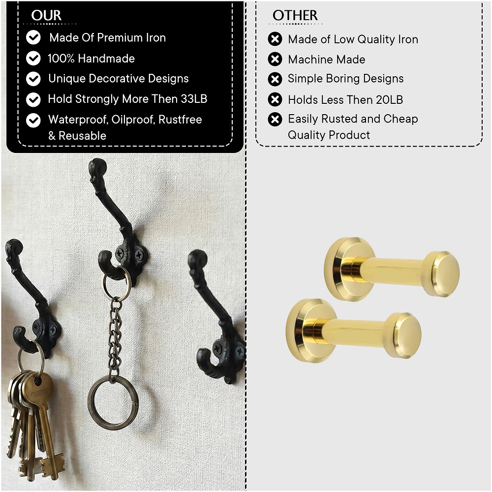 Wall Hook, When Put on Wall or Cabinet It is An Art in Itself. This Hook is Strong Enough to Hold Your Cloths, Keys, Tea Cups, Coffee Mugs, Hand Towels Etc.