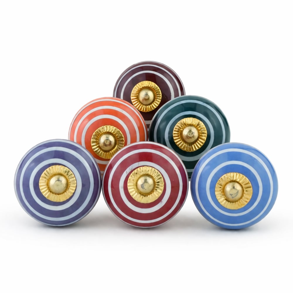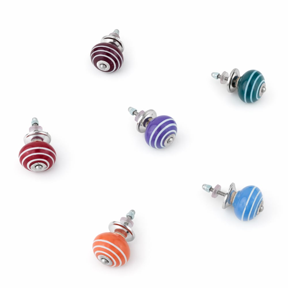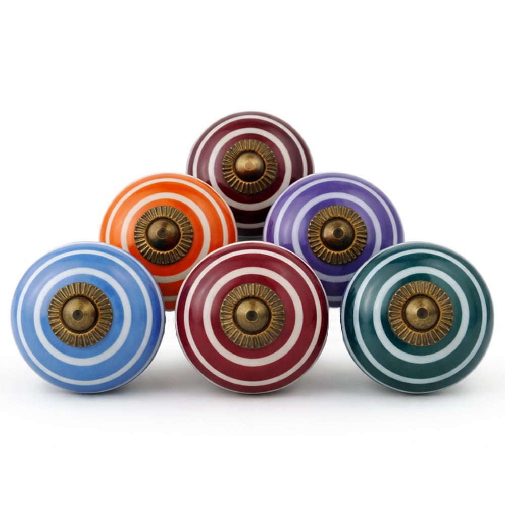 Handmade ceramic striped knobs adds charm to your furniture. Ideal for drawers, dressers, cabinets, wardrobes, cupboards, doors, and almirahs.