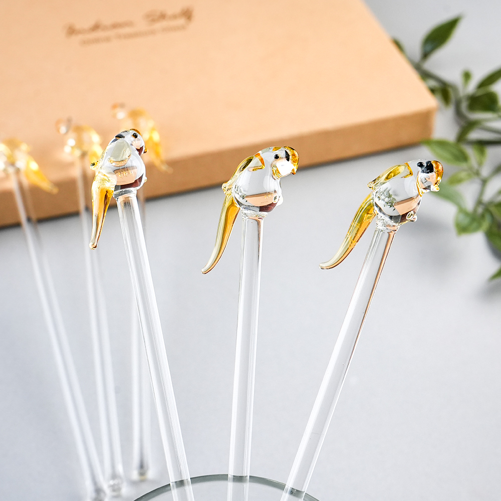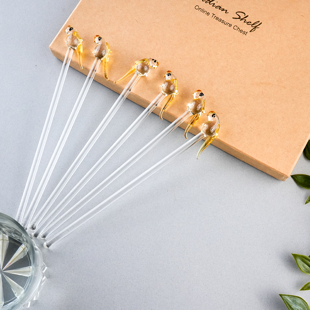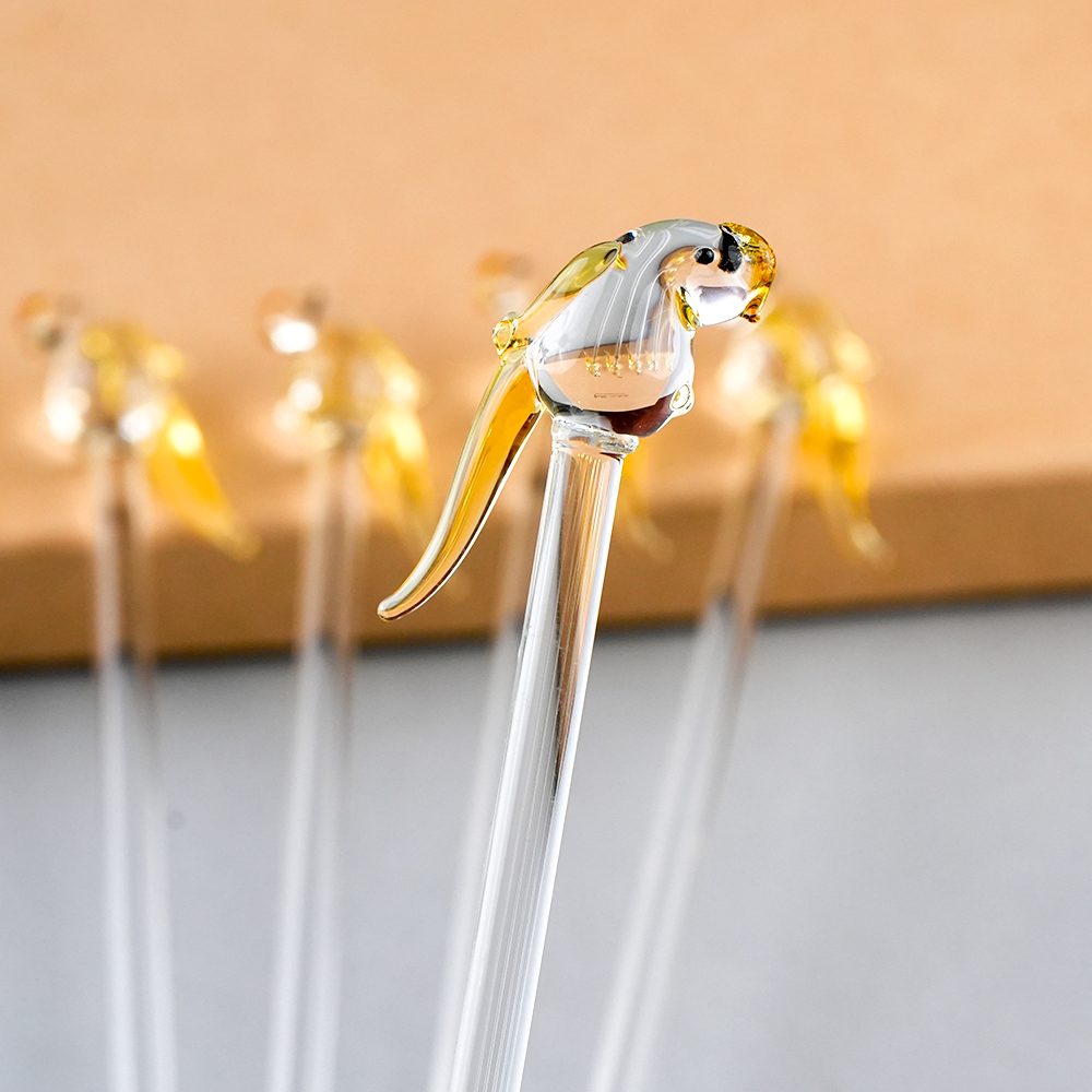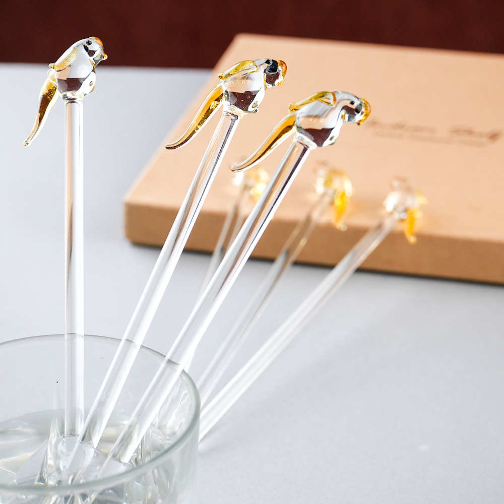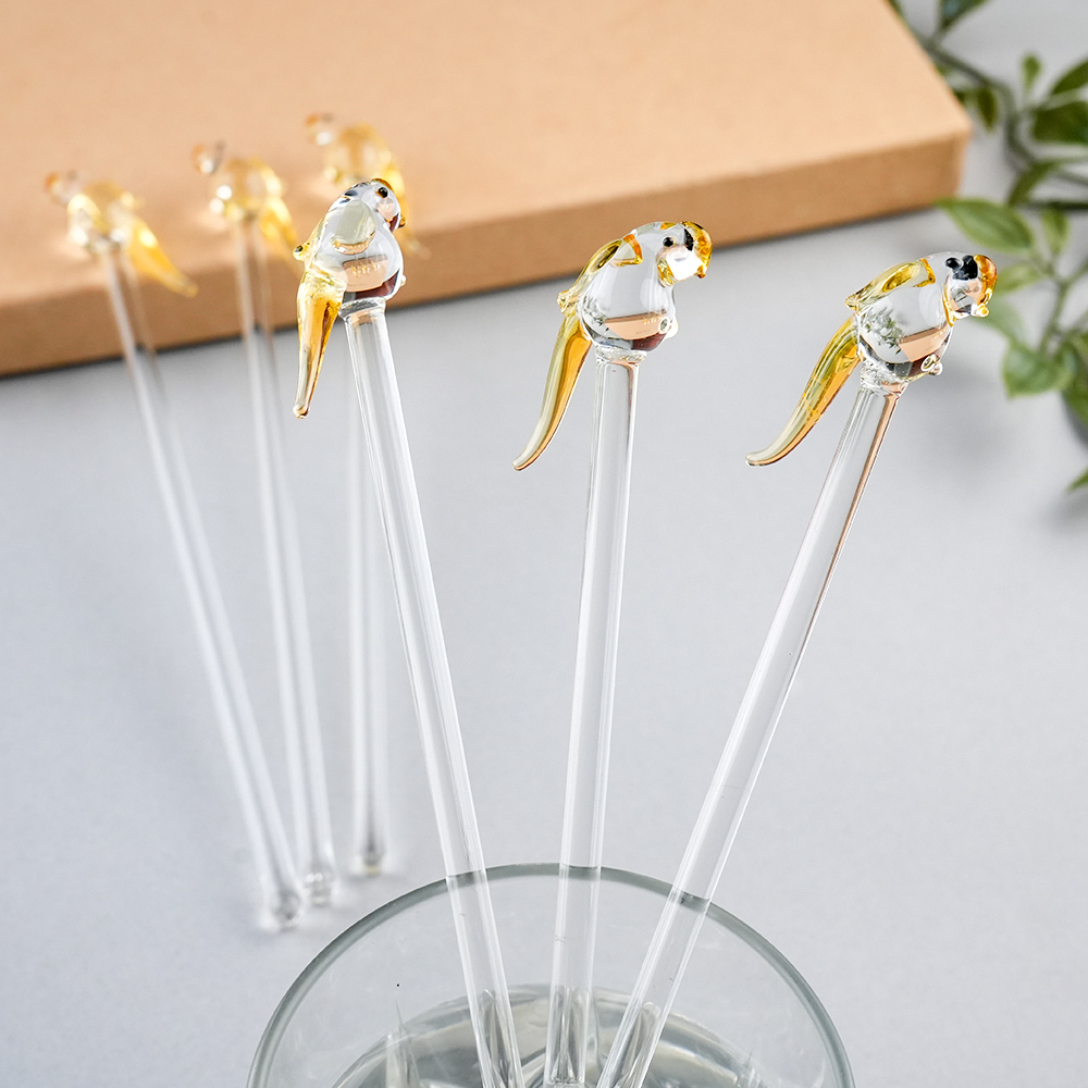 Elevate your drink presentation with this exquisite set of handcrafted glass stirrers featuring delicate bird designs on top. Each stirrer is carefully made with clear glass stems and intricately shaped bird figures, adding a playful yet elegant touch to your beverages. Perfect for cocktails, mocktails, tea, or coffee, these stirrers combine functionality with artistic charm. Ideal for home use, parties, or gifting, they bring a unique and stylish flair to any table setting.