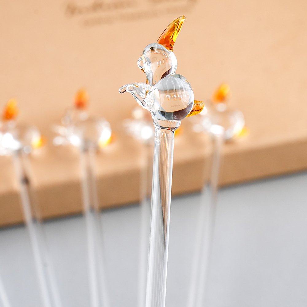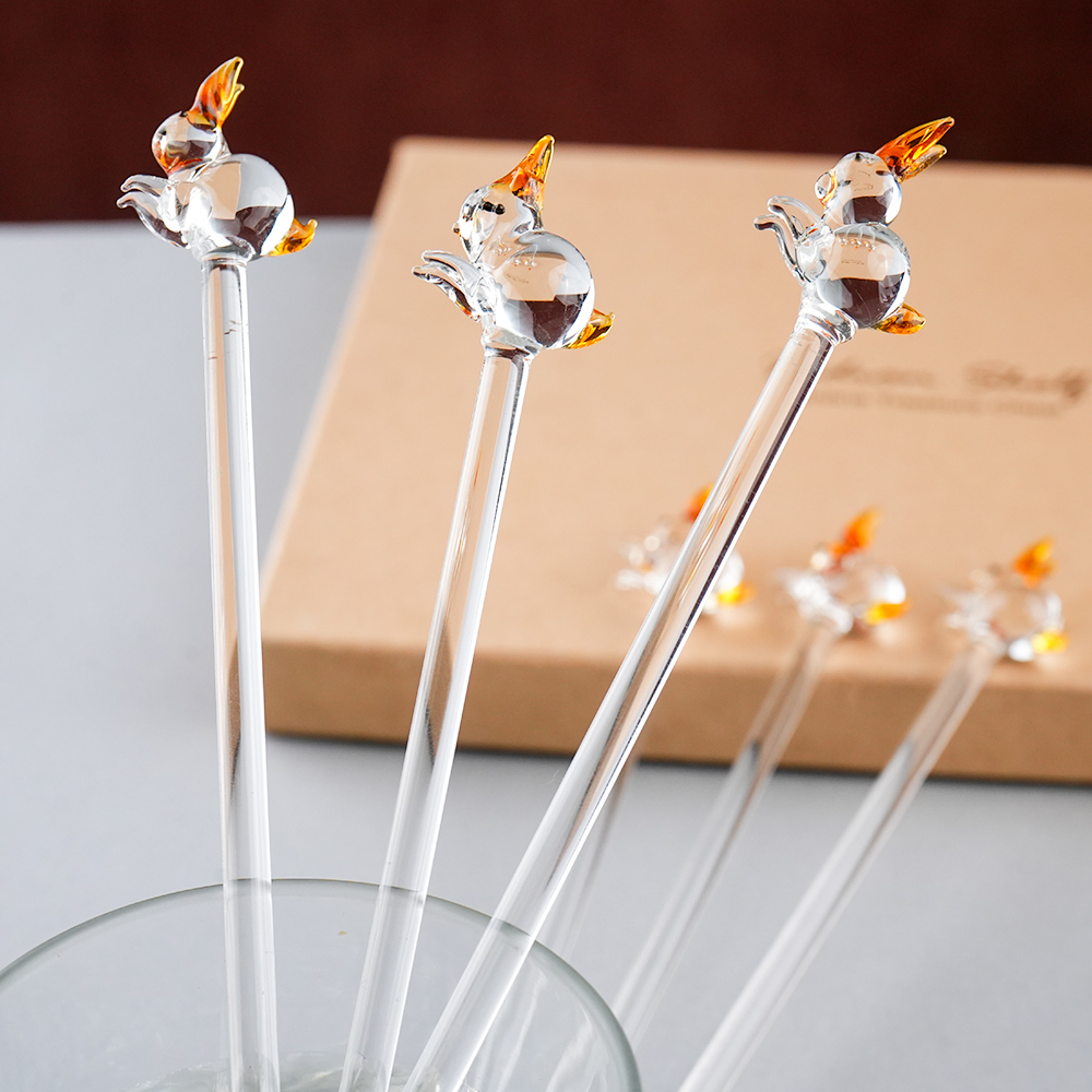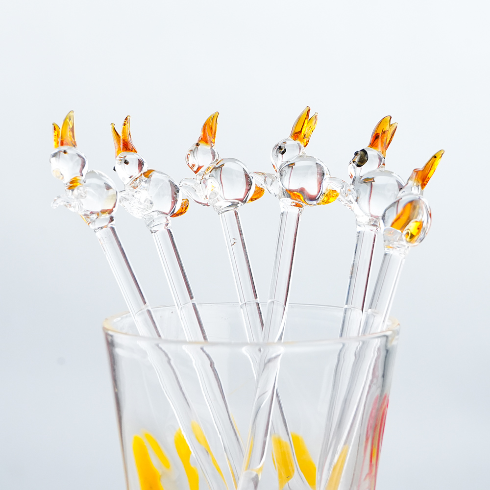 Elevate your drink presentation with this exquisite set of handcrafted glass stirrers featuring delicate Rabbit designs on top. Each stirrer is carefully made with clear glass stems and intricately shaped Rabbit figures, adding a playful yet elegant touch to your beverages. Perfect for cocktails, mocktails, tea, or coffee, these stirrers combine functionality with artistic charm. Ideal for home use, parties, or gifting, they bring a unique and stylish flair to any table setting.