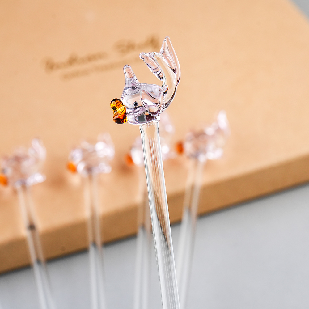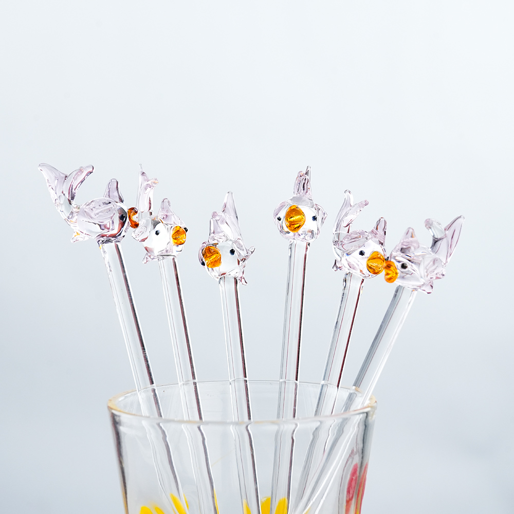 Elevate your drink presentation with this exquisite set of handcrafted glass stirrers featuring delicate Fish designs on top. Each stirrer is carefully made with clear glass stems and intricately shaped Fish figures, adding a playful yet elegant touch to your beverages. Perfect for cocktails, mocktails, tea, or coffee, these stirrers combine functionality with artistic charm. Ideal for home use, parties, or gifting, they bring a unique and stylish flair to any table setting.