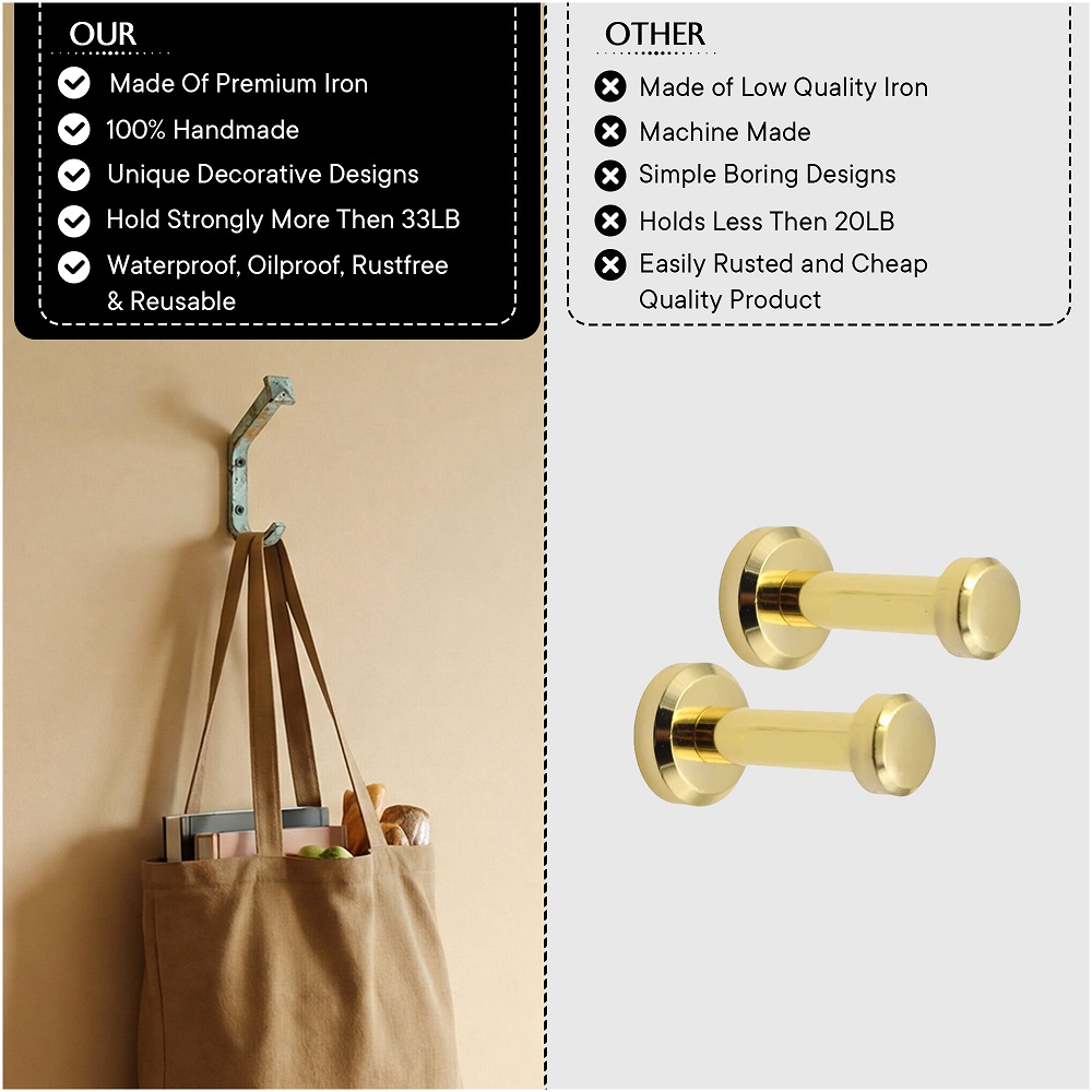 Wall Hook, When Put on Wall or Cabinet It is An Art in Itself. This Hook is Strong Enough to Hold Your Cloths, Keys, Tea Cups, Coffee Mugs, Hand Towels Etc.