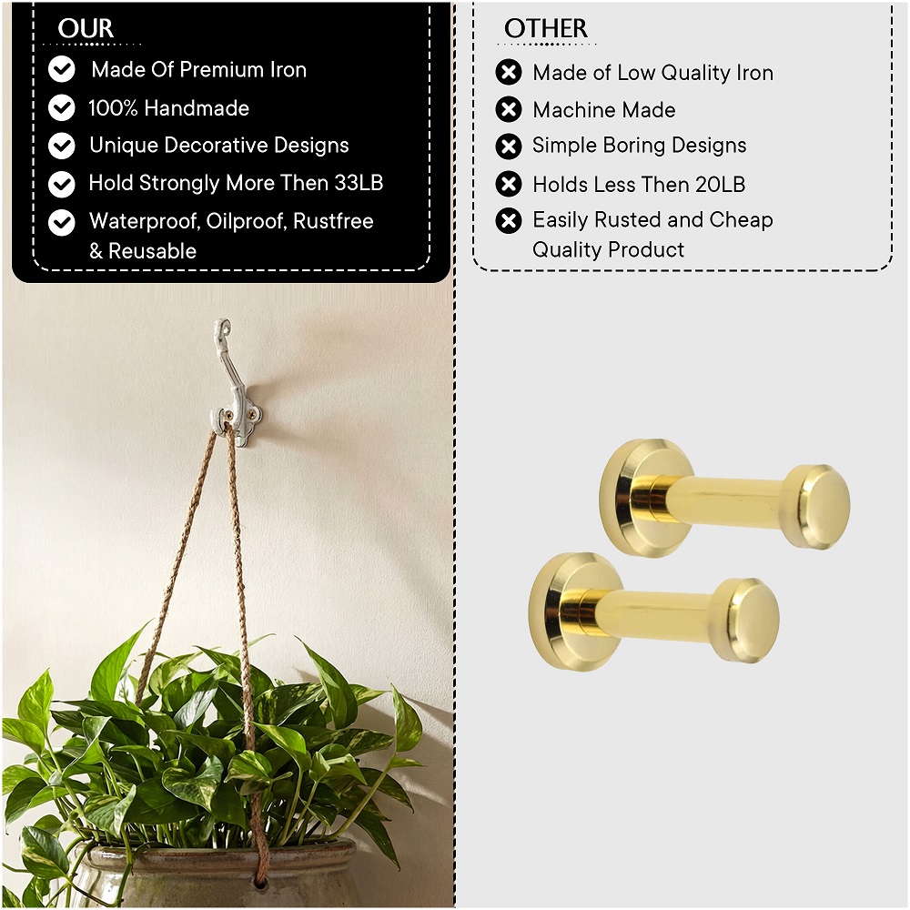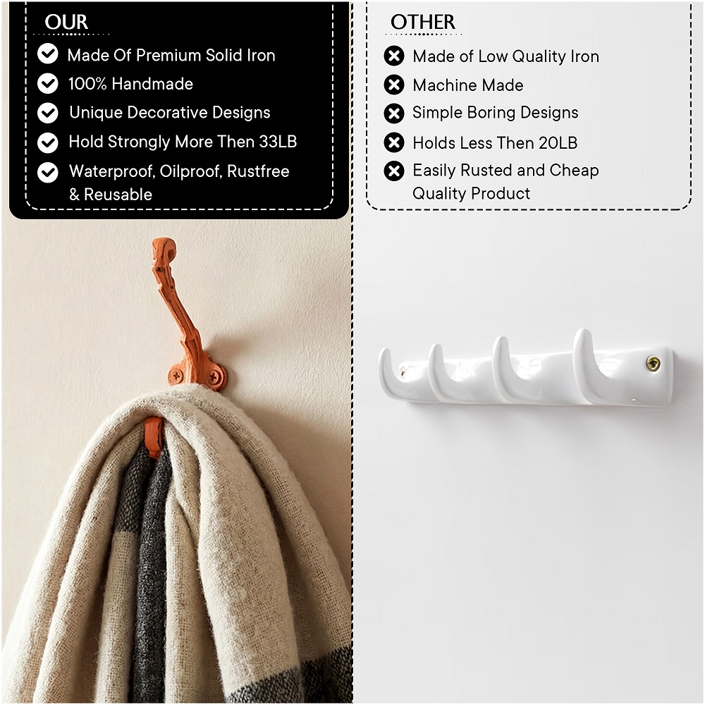 Wall Hook, When Put on Wall or Cabinet It is An Art in Itself. This Hook is Strong Enough to Hold Your Cloths, Keys, Tea Cups, Coffee Mugs, Hand Towels Etc.