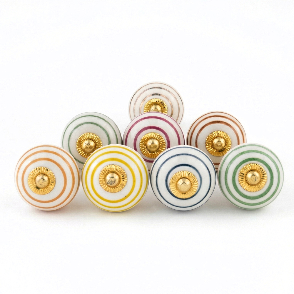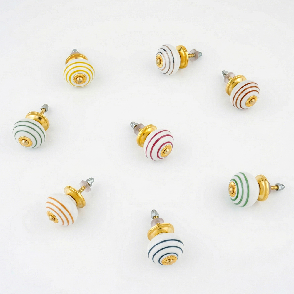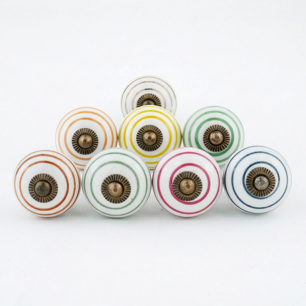 Handmade ceramic striped knobs adds charm to your furniture. Ideal for drawers, dressers, cabinets, wardrobes, cupboards, doors, and almirahs.